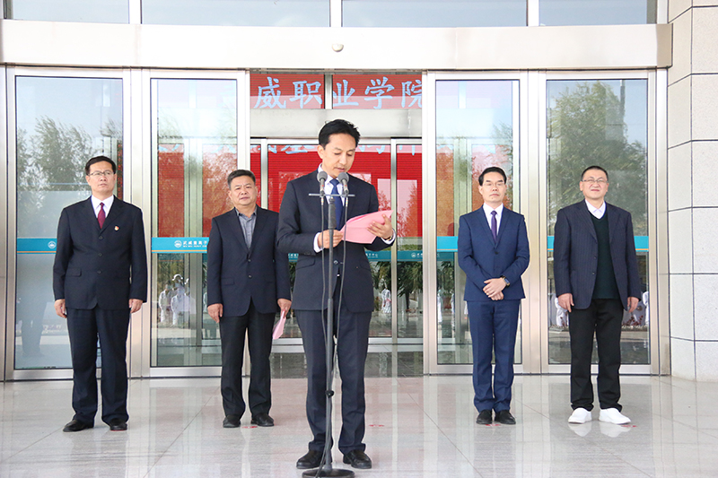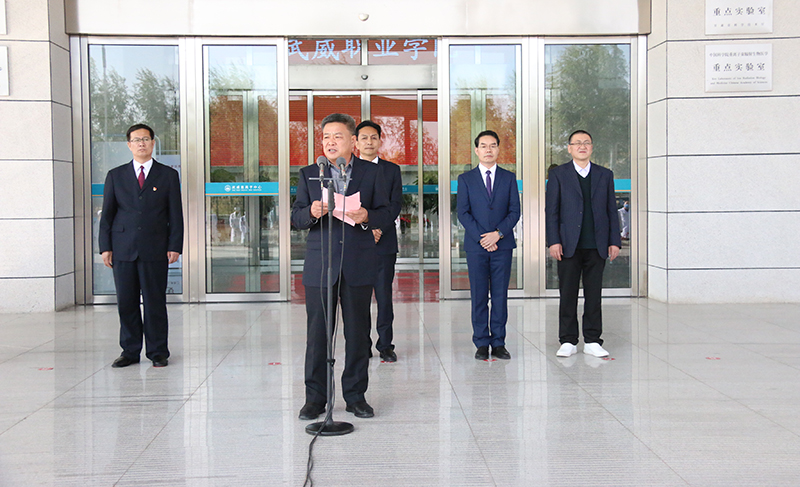 揭牌儀式上,趙明介紹學(xué)院教育教學(xué)改革發(fā)展所取得的成效,強(qiáng)調(diào)職業(yè)教育和普通教育是兩種不同的教育類型,具有同等重要地位,全面落實(shí)《國家職業(yè)教育改革實(shí)施方案》和“技能甘肅”部署要求,推動學(xué)院“雙高”建設(shè),爭創(chuàng)高職應(yīng)用型本科院校,離不開高水平的合作醫(yī)院,離不開高水平的師資隊伍。教師實(shí)踐基地的揭牌成立,將會進(jìn)一步加強(qiáng)雙方的合作交流,實(shí)現(xiàn)資源共享、優(yōu)勢互補(bǔ)、共同發(fā)展,我們要積極探索和創(chuàng)新基地育人方式,使之成為“雙師型”教師培養(yǎng)的搖籃。