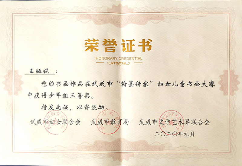 人文藝術(shù)教育系學生參加武威市“翰墨傳家”婦女兒童書畫大賽獲獎