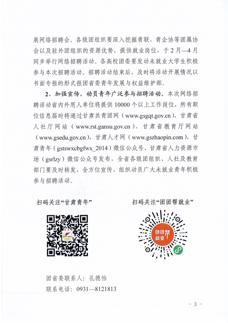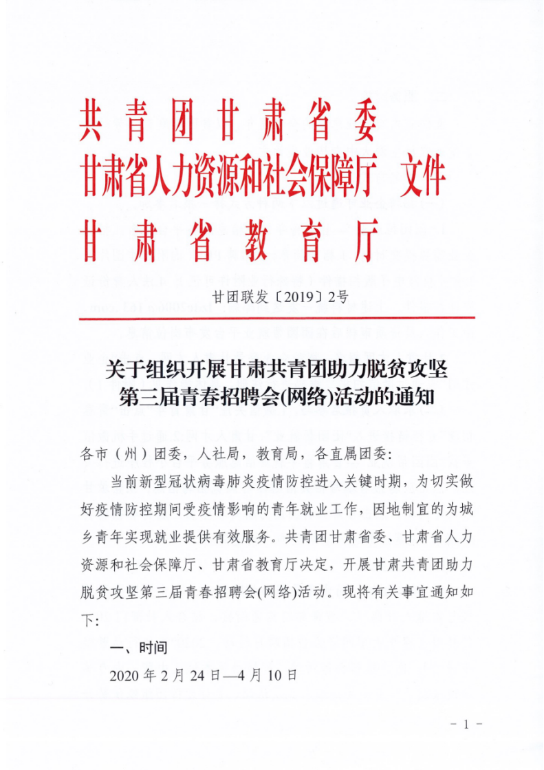 關于組織開展甘肅共青團助力脫貧攻堅第三屆青春招聘會(網(wǎng)絡)活動的通知