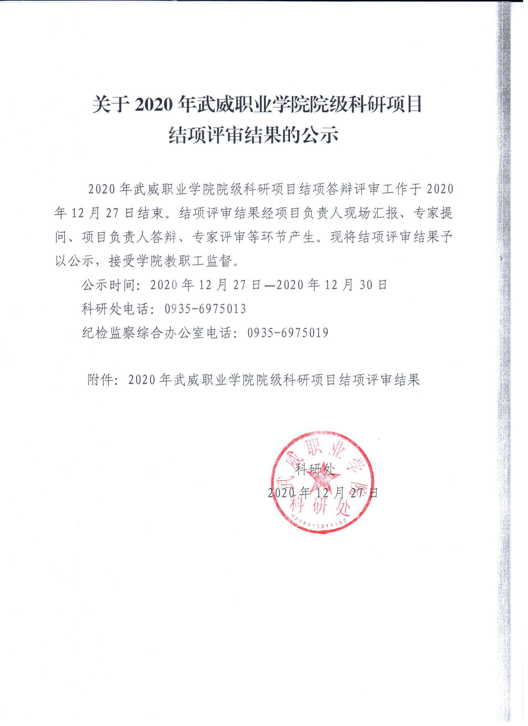 關(guān)于2020年武威職業(yè)學(xué)院院級科研項(xiàng)目結(jié)項(xiàng)評審結(jié)果公示
