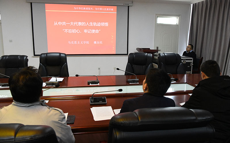 1月6日下午,行政第二黨支部開展“四史”教育暨重溫入黨誓詞活動。支部書記魏全民以“從中共一大代表的人生軌跡領(lǐng)悟‘不忘初心、牢記使命’”為主題,為支部全體黨員上了一堂思想洗禮的黨課。