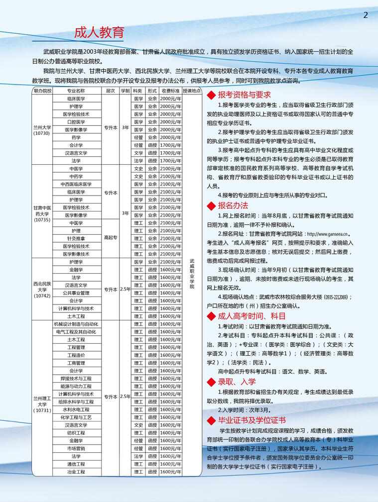 武威職業(yè)學(xué)院繼續(xù)教育學(xué)院2022年招生簡(jiǎn)章