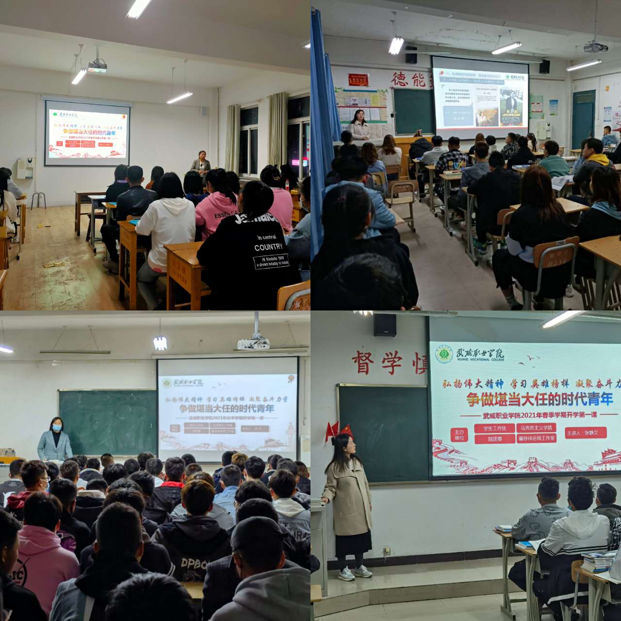授課圍繞“弘揚脫貧攻堅精神,激發(fā)建功強(qiáng)大動力”、“學(xué)習(xí)戍邊英雄事跡,匯聚強(qiáng)國磅礴力量”、“遵守國家規(guī)定要求,筑牢疫情防控防線”和“牢固樹立安全意識,切實維護(hù)校園安全”四個方面展開,授課教師和同學(xué)們一起全面分享了脫貧攻堅取得的偉大成就和衛(wèi)國戍邊英雄的感人事跡,并對常態(tài)化疫情防控工作和學(xué)校安全工作做了細(xì)致講解。旨在激勵廣大學(xué)生弘揚脫貧攻堅精神,厚植愛國戰(zhàn)斗情懷,并使同學(xué)們更好地適應(yīng)學(xué)校學(xué)習(xí)生活,遵守常態(tài)化疫情防控制度和學(xué)院各項規(guī)章制度,以保證新學(xué)期教育教學(xué)工作平穩(wěn)有序開展,保證全院長期安全穩(wěn)定。