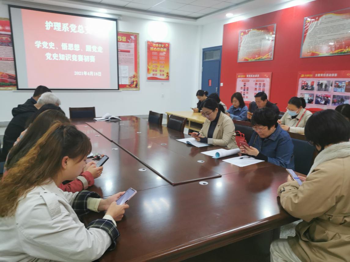 為迎接中國(guó)共產(chǎn)黨百年華誕,深入推進(jìn)黨史學(xué)習(xí)教育,進(jìn)一步豐富師生黨史學(xué)習(xí)教育內(nèi)容,4月19日,護(hù)理系黨總支舉辦以“學(xué)黨史 悟思想 跟黨走”為主題的黨史知識(shí)競(jìng)賽初賽,全體黨員、入黨積極分子、班團(tuán)干部共計(jì)40余人參加了本次競(jìng)賽。