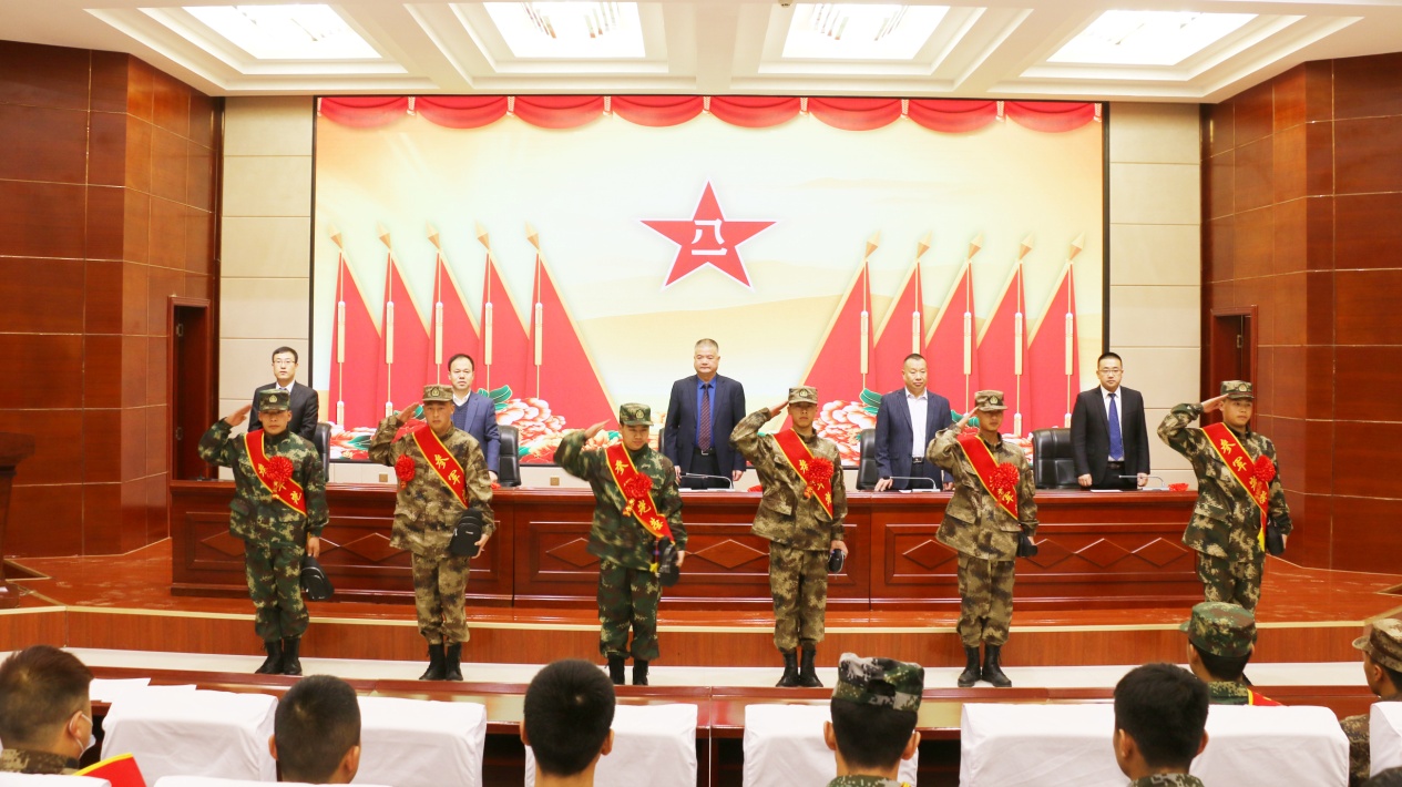 大會上,高鵬堂宣讀了2021年春季入伍學(xué)生名單和近兩年退役復(fù)學(xué)學(xué)生名單;參會領(lǐng)導(dǎo)為應(yīng)征入伍的12名新兵佩戴紅花,贈送紀(jì)念品,為退役復(fù)學(xué)學(xué)生代表佩戴紅花,頒發(fā)榮譽證書。