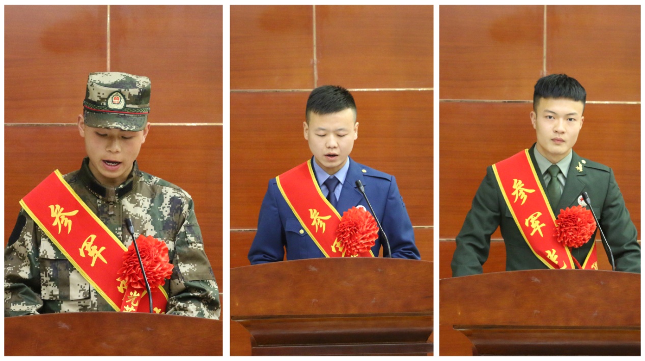 電子信息工程系學(xué)生王鴻代表學(xué)院入伍新兵發(fā)言,表示將不負(fù)母校培養(yǎng),傳承戍邊英雄精神,爭取在軍營中建功立業(yè),報效國家,展現(xiàn)武職學(xué)子良好的精神風(fēng)貌。