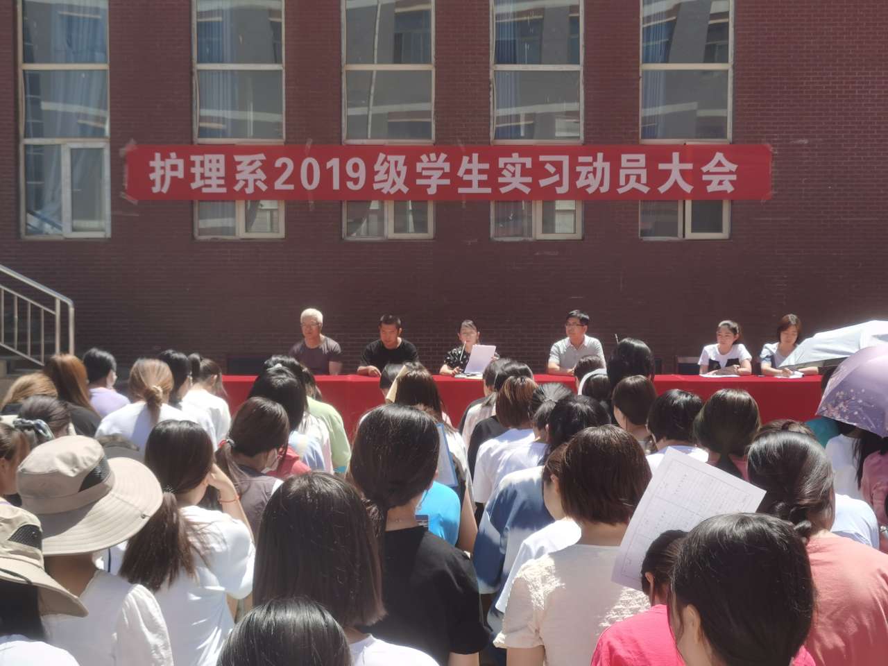 為進(jìn)一步做好實(shí)習(xí)生實(shí)習(xí)下點(diǎn)前的思想工作,增強(qiáng)我系2019級(jí)學(xué)生對(duì)跟崗實(shí)習(xí)工作的認(rèn)識(shí),提高實(shí)習(xí)工作的管理水平, 7月3日上午,護(hù)理系在明遠(yuǎn)樓北廣場(chǎng)組織召開(kāi)2019級(jí)學(xué)生實(shí)習(xí)動(dòng)員大會(huì)。護(hù)理系黨總支書(shū)記張建輝、主任韓曉萍、系輔導(dǎo)員、班主任及2019級(jí)800余名學(xué)生參加了會(huì)議。會(huì)議由護(hù)理系分團(tuán)委書(shū)記楊杰主持。