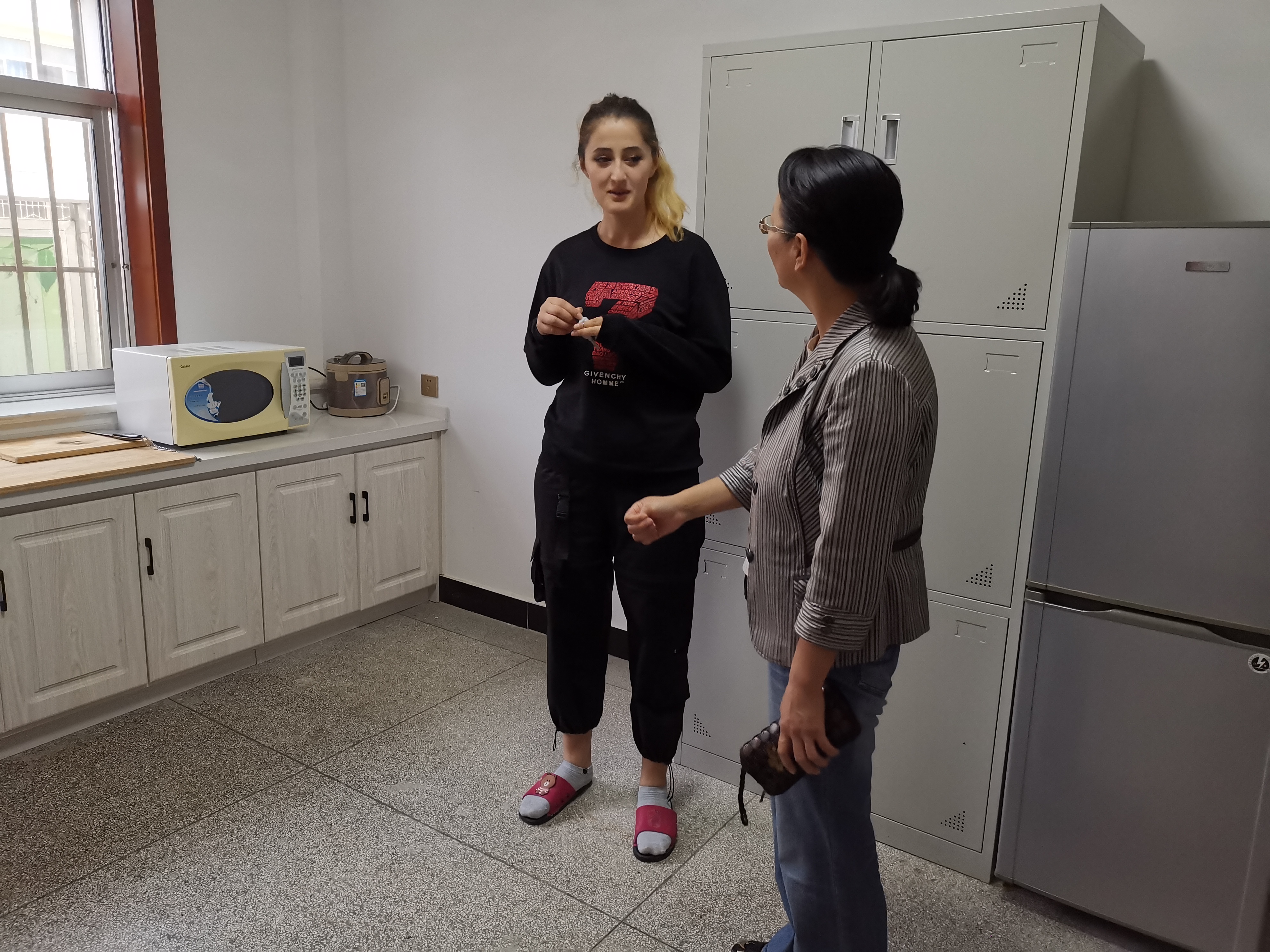 田迎春先后深入2019級(jí)、2021級(jí)來(lái)華留學(xué)生宿舍、廚房,查看、了解留學(xué)生住宿、生活情況,向留學(xué)生送上慰問品。在留學(xué)生宿舍,田迎春與留學(xué)生親切交談,關(guān)切詢問留學(xué)生日常生活、專業(yè)學(xué)習(xí)、漢語(yǔ)學(xué)習(xí)等情況。她向留學(xué)生簡(jiǎn)要介紹了中秋節(jié)、國(guó)慶節(jié)的來(lái)歷、風(fēng)俗及意義,留學(xué)生們對(duì)中國(guó)傳統(tǒng)文化表現(xiàn)出濃厚興趣;她指出,留學(xué)生背井離鄉(xiāng)來(lái)華求學(xué),遇到困難在所難免,但要堅(jiān)定信心,學(xué)院會(huì)盡力滿足留學(xué)生學(xué)習(xí)、生活的需要;她鼓勵(lì)留學(xué)生積極主動(dòng)融入學(xué)院大家庭,廣交朋友,在融入、融合過(guò)程中體會(huì)在華學(xué)習(xí)生活的樂趣;她希望留學(xué)生珍惜寶貴的來(lái)華學(xué)習(xí)的機(jī)會(huì),不僅要學(xué)好理論知識(shí),而且要學(xué)好操作技能,不僅要學(xué)好專業(yè)知識(shí),而且要學(xué)好優(yōu)秀中華文化,講好中國(guó)故事,向世界展示真實(shí)的中國(guó),爭(zhēng)做知華友華愛華的留學(xué)生,爭(zhēng)做中國(guó)與世界各國(guó)友好的使者。