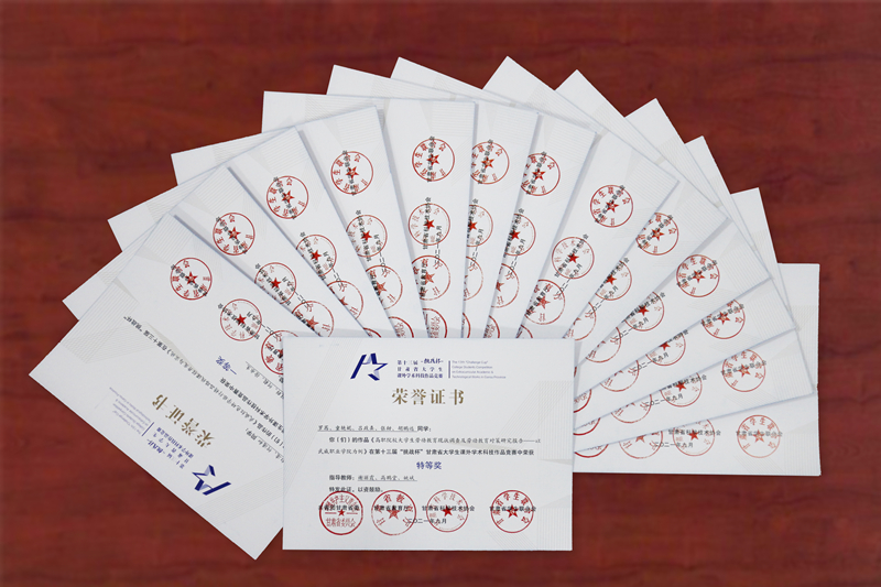 近期,省教育廳和團(tuán)省委等4部門聯(lián)合下發(fā)了《關(guān)于第十三屆“挑戰(zhàn)杯”甘肅省大學(xué)生課外學(xué)術(shù)科技作品競(jìng)賽獲獎(jiǎng)情況的通報(bào)》,我院在本屆大賽中再創(chuàng)佳績(jī),在主賽道中,我院遴選參賽32件作品,獲特等獎(jiǎng)1項(xiàng)、一等獎(jiǎng)2項(xiàng)、二等獎(jiǎng)5項(xiàng)、三等獎(jiǎng)14項(xiàng);在紅色專項(xiàng)賽中,我院遴選推送6件作品,獲二等獎(jiǎng)3項(xiàng)、三等獎(jiǎng)3項(xiàng);總成績(jī)位列職業(yè)院校前列,學(xué)院再次捧得“優(yōu)秀組織獎(jiǎng)”。
