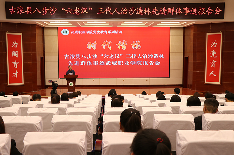 八步沙“六老漢”三代人治沙造林先進(jìn)群體事跡報(bào)告團(tuán)走進(jìn)武威職業(yè)學(xué)院