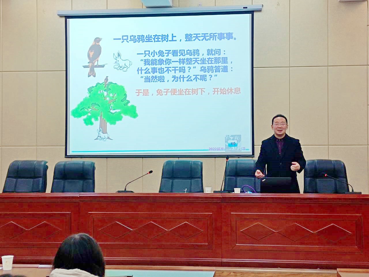 最后,金主任對(duì)同學(xué)們開(kāi)展就業(yè)指導(dǎo)。期間,金主任以幽默風(fēng)趣的語(yǔ)言,結(jié)合自身經(jīng)歷,貼合實(shí)際講解,引導(dǎo)同學(xué)們樹(shù)立正確的就業(yè)觀和擇業(yè)觀,以積極的心態(tài)面對(duì)嚴(yán)峻的就業(yè)形勢(shì)。
