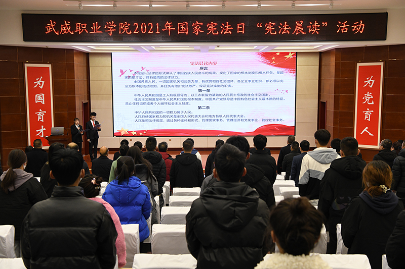 “本憲法以法律的形式確認了中國各族人民奮斗的成果,規(guī)定了國家的根本制度和根本任務,是國家的根本大法,具有最高的法律效力……” 在“12·4”國家第八個憲法日當天,學院舉辦了“憲法晨讀”活動。伴隨著朗朗的誦讀聲,在場師生莊嚴而肅穆地感受著憲法作為國家根本大法的神圣不可侵犯性。