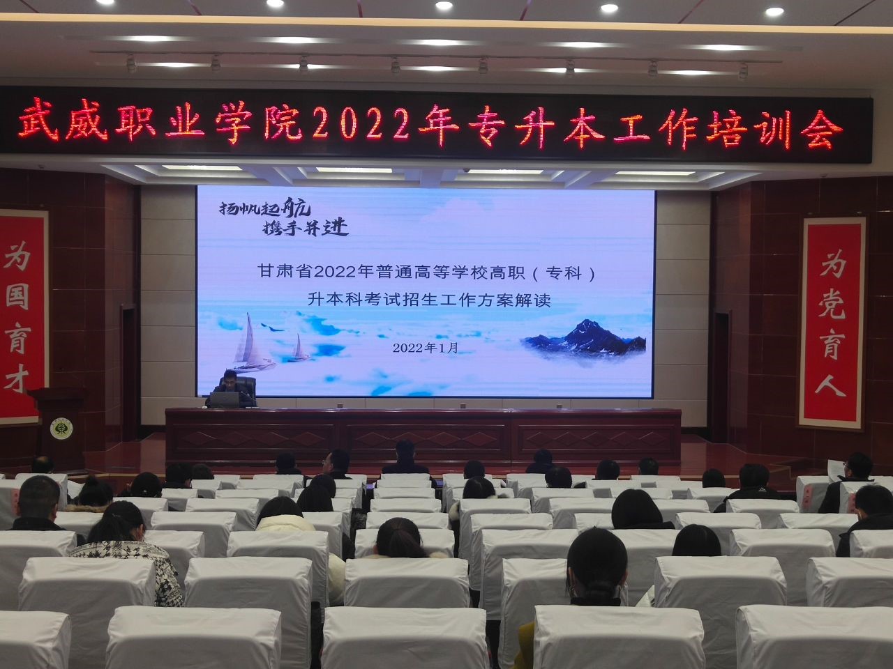 為貫徹落實(shí)甘肅省2022年普通專升本考試招生工作部署會(huì)會(huì)議精神,積極宣傳我省2022年“專升本”招生考試改革政策,引導(dǎo)學(xué)院應(yīng)屆畢業(yè)生積極報(bào)考“專升本”考試,拓寬畢業(yè)生就業(yè)渠道,實(shí)現(xiàn)高質(zhì)量就業(yè)。1月6日,招生就業(yè)處組織召開了學(xué)院2022年“專升本”工作培訓(xùn)會(huì)。相關(guān)部門負(fù)責(zé)人、各教學(xué)院系書記、主任、輔導(dǎo)員及畢業(yè)班班主任參加了會(huì)議。會(huì)議由招生就業(yè)處處長蔡柱山主持。