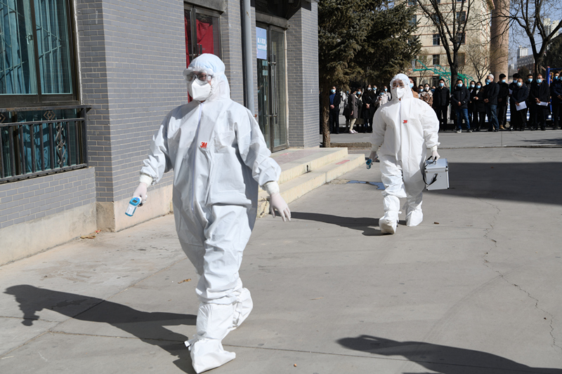 本次應急演練重點圍繞體溫測試、清潔消毒、應急處置等多項防控重點內容開展實地演練。演練過程中,疫情處置應急各小組嚴陣以待、聞令而動,按照既定預案迅速行動、配合密切,準確高效地完成了疫情防控應急演練各項任務,達到了演練的預期目的。學校疫情防控領導小組全體成員,市、區(qū)疾控中心專家,武威市腫瘤醫(yī)院(對接支持醫(yī)院),全體輔導員、班主任,醫(yī)務室全體人員,其他科室相關人員參加了演練。學校副校長王永緒、王守云主持演練。
