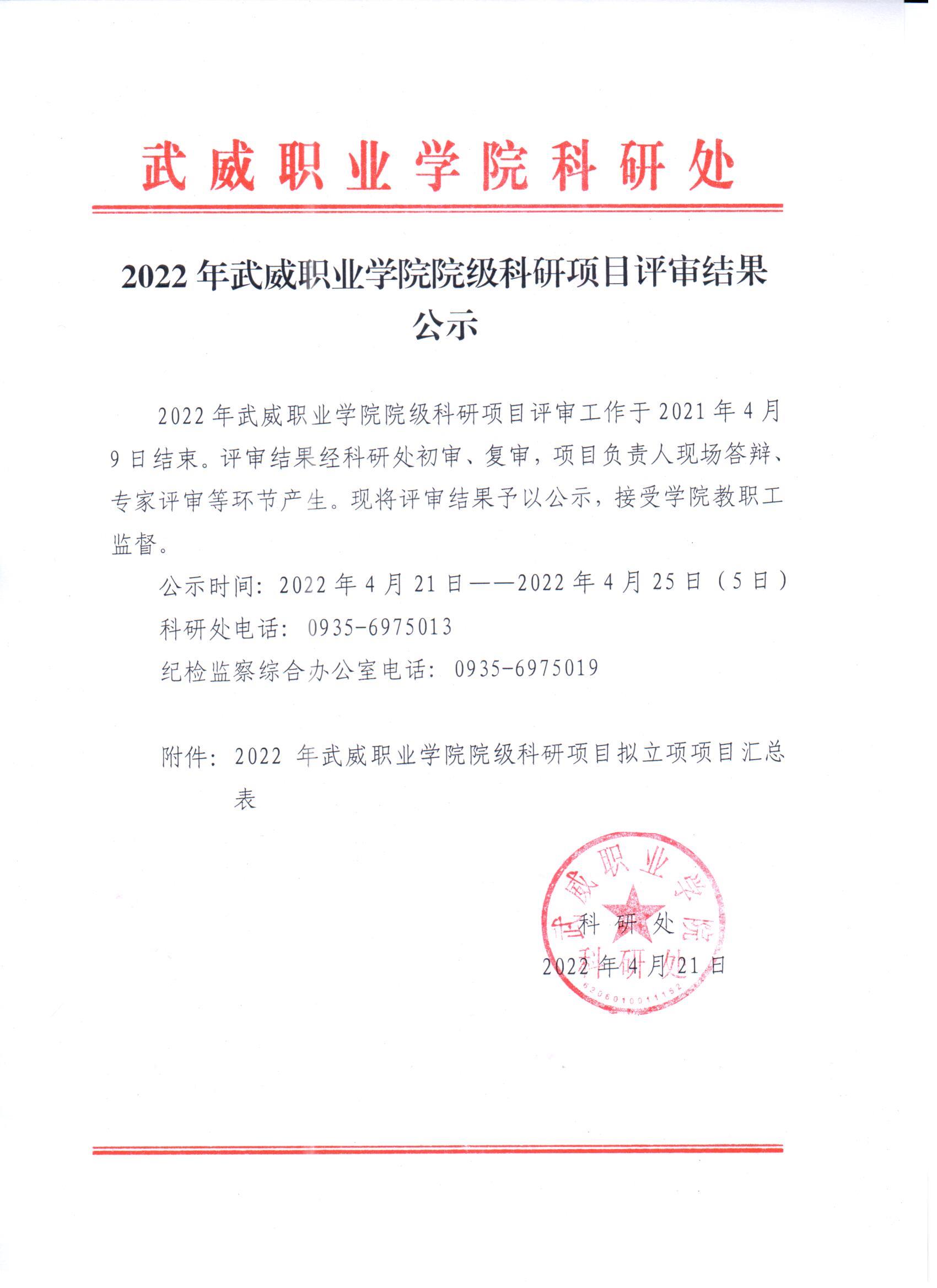2022年武威職業(yè)學院院級科研項目評審結果公示