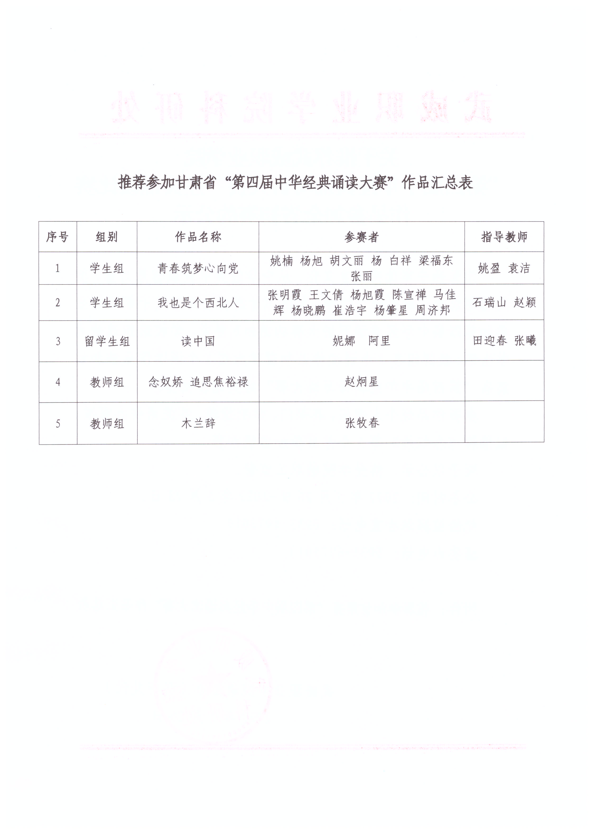 關(guān)于推薦武威職業(yè)學(xué)院“第四屆中華經(jīng)典誦寫講大賽”經(jīng)典誦讀比賽作品參加全省初賽的公示