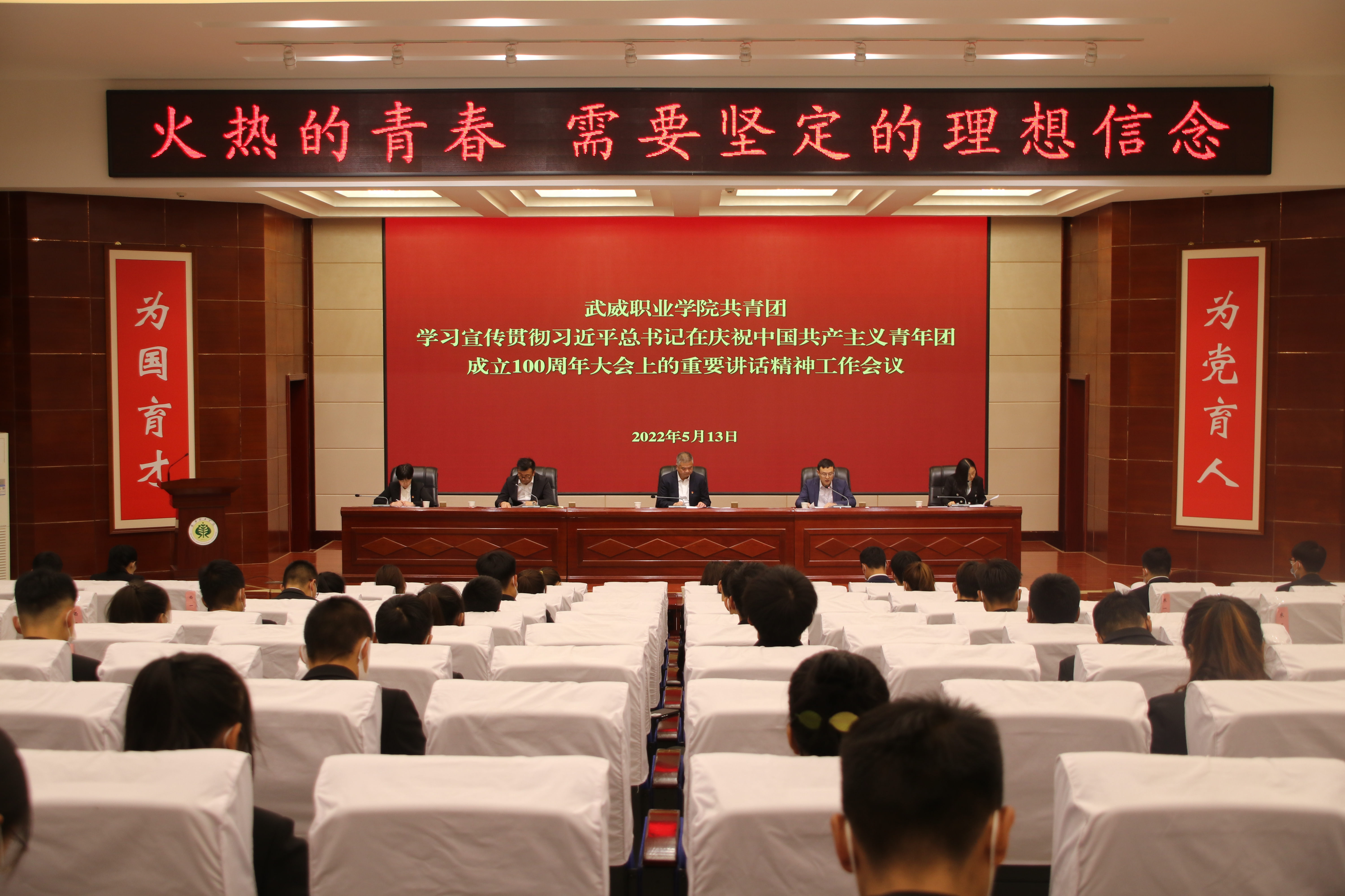 會(huì)議指出,學(xué)習(xí)宣傳貫徹習(xí)近平總書記在慶祝中國共青團(tuán)成立100周年大會(huì)上的重要講話精神,是學(xué)校各級團(tuán)組織和廣大團(tuán)員青年當(dāng)前和今后一段時(shí)期的首要政治任務(wù),要堅(jiān)持與黨同心、跟黨奮斗,學(xué)深悟透總書記重要講話精神,自覺踐行新時(shí)代共青團(tuán)的使命任務(wù),培養(yǎng)純潔擔(dān)當(dāng)?shù)膱F(tuán)員隊(duì)伍,成為走在時(shí)代前列的先進(jìn)組織,把學(xué)習(xí)成果體現(xiàn)到 “雙高計(jì)劃”學(xué)校建設(shè)和武威職業(yè)技術(shù)大學(xué)申辦工作的具體行動(dòng)上,以優(yōu)異成績迎接黨的二十大勝利召開。