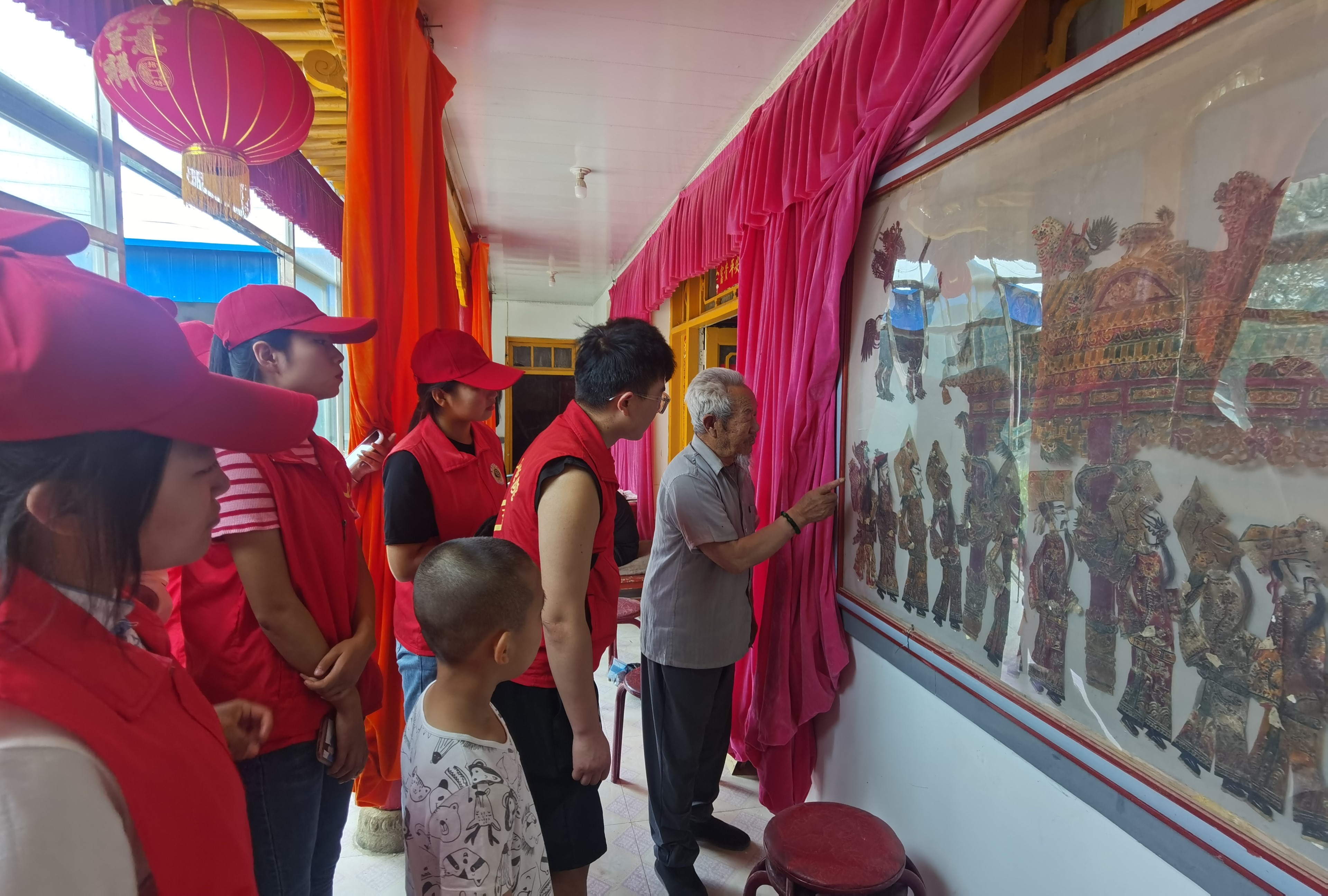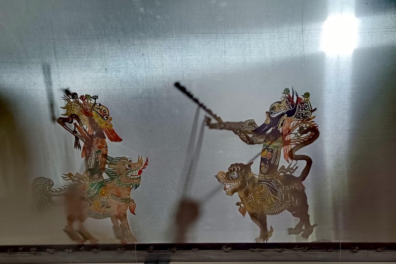 馬登岐老人為隊員們表演了一段經(jīng)典的皮影劇《黑虎坐臺》,方寸之間有天地,白紗帳前龍虎斗。一盞明燈影出一群紙偶,幾支竹竿撐起一方幕布,浮光掠影之間,所有的故事都在這方小小的幕布中演繹得淋漓盡致。