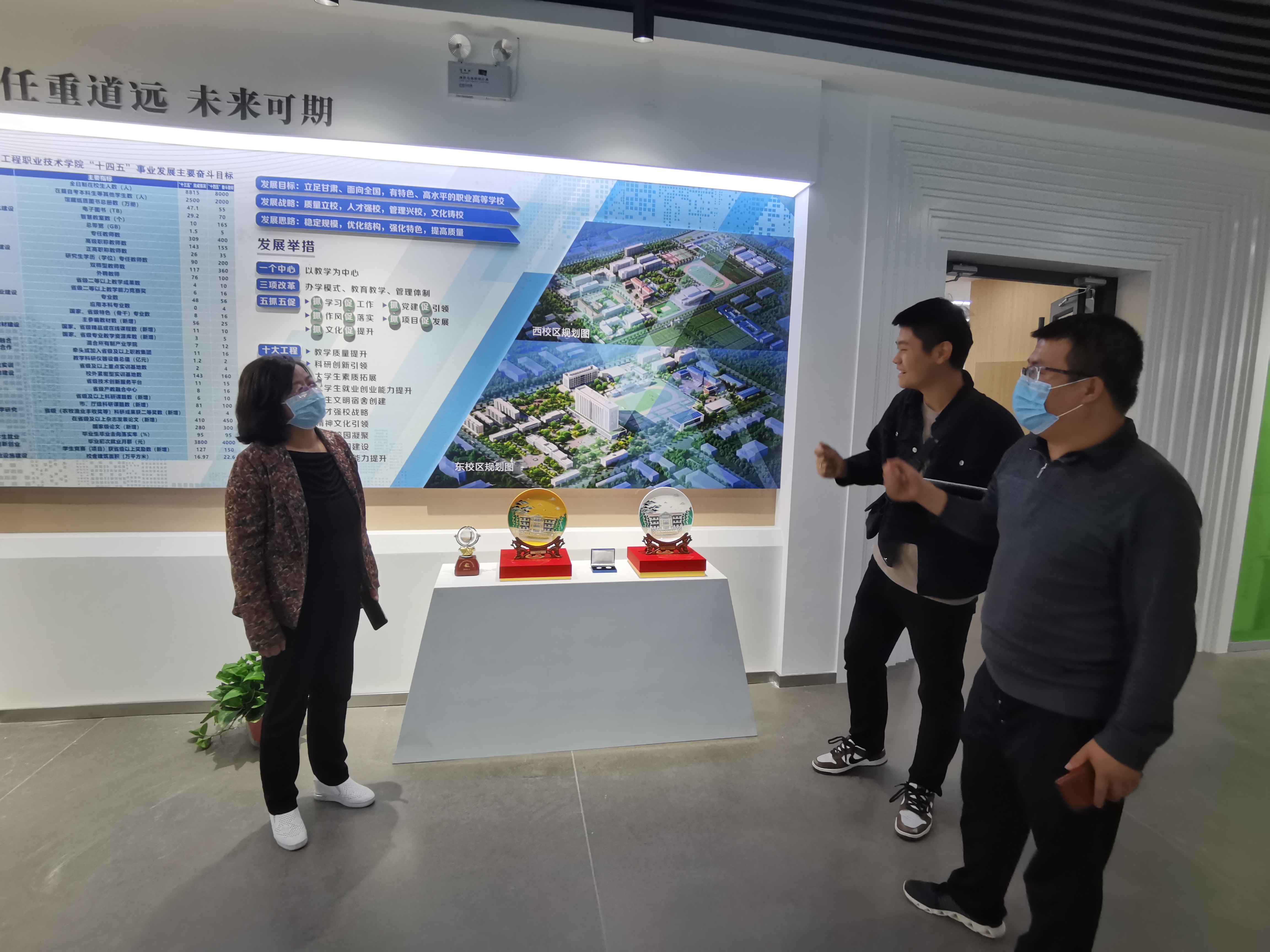 為全面推進(jìn)“雙高計(jì)劃”學(xué)校建設(shè),提升圖書館服務(wù)水平,營造“書香校園”,將圖書館打造成人性化、智能化、專業(yè)化的綠色學(xué)習(xí)空間。近日,圖書館館長楊如松、副館長蔡濟(jì)眾、館員楊建盛三人到甘肅省畜牧工程職業(yè)技術(shù)學(xué)院圖書館考察學(xué)習(xí),在甘肅省畜牧工程職業(yè)技術(shù)學(xué)院圖書館館長解玉寶陪同下,參觀了該校圖書館讀書吧、校史館、黨史館、“挑戰(zhàn)杯”獲獎(jiǎng)作品展覽館等處,解玉寶講解了該館設(shè)計(jì)理念及建設(shè)過程中的側(cè)重點(diǎn)和展示重點(diǎn)。楊如松就現(xiàn)在圖書館裝發(fā)展趨勢(shì)、圖書館管理辦法、學(xué)生借閱量等實(shí)際問題同解玉寶進(jìn)行了相互交流。