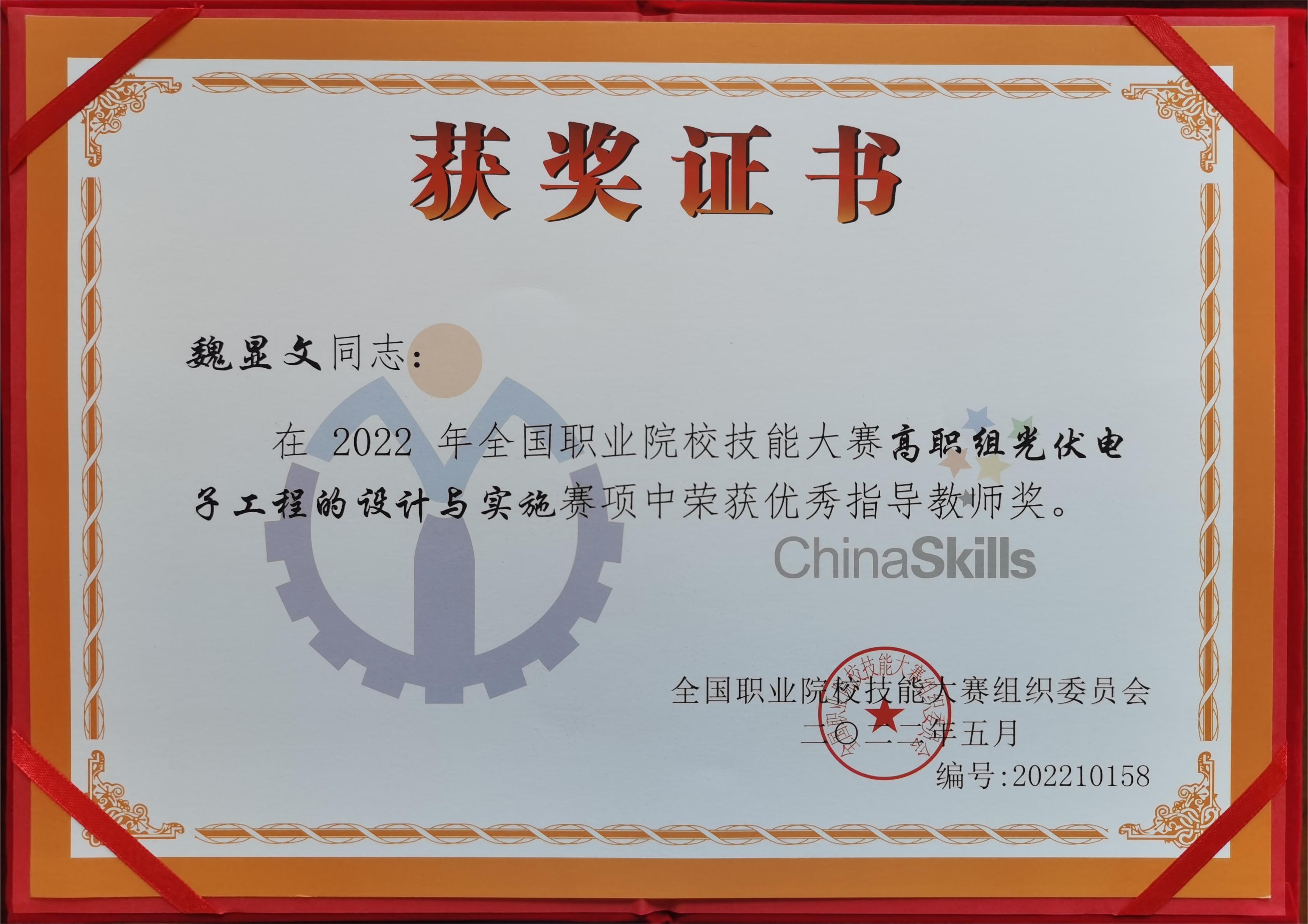 8月22日至23日,由教育部、工業(yè)和信息化部、財政部、人力資源和社會保障部、住房和城鄉(xiāng)建設(shè)部、交通運輸部、農(nóng)業(yè)部等部委主辦的2022年全國職業(yè)院校技能大賽高職組“光伏電子工程的設(shè)計與實施”賽項在山東德州職業(yè)技術(shù)學(xué)院舉辦,來自全國30個省(市)、自治區(qū)的55支代表隊參加了比賽。武威職業(yè)學(xué)院中科低碳新能源技術(shù)學(xué)院高東興、富金強、趙寶林三名同學(xué)代表甘肅省參加本次大賽,最終榮獲國賽一等獎,完全實現(xiàn)了賽前確定的“穩(wěn)二爭一”的目標(biāo)任務(wù)。這是學(xué)校參加全國職業(yè)院校技能大賽以來首次獲得國賽一等獎,實現(xiàn)了學(xué)校該賽項國獎“零”的突破,開啟了學(xué)校專業(yè)建設(shè)高質(zhì)量發(fā)展新征程。本次優(yōu)異成績的取得充分展現(xiàn)了學(xué)?!皪徴n賽證”相融通的綜合育人效果,充分體現(xiàn)了學(xué)校深化“三教改革”推動高質(zhì)量發(fā)展的成效,充分彰顯了學(xué)校實施“雙高計劃”“技能甘肅”“提質(zhì)培優(yōu)”等重大項目建設(shè)推進高水平發(fā)展的成效,本次競賽成績是對學(xué)校新能源類專業(yè)建設(shè)的肯定,也是武威乃至全省職業(yè)教育發(fā)展的試金石和榮光。