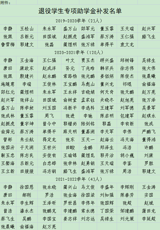 關(guān)于補(bǔ)發(fā)退役學(xué)生專項(xiàng)助學(xué)金的公示