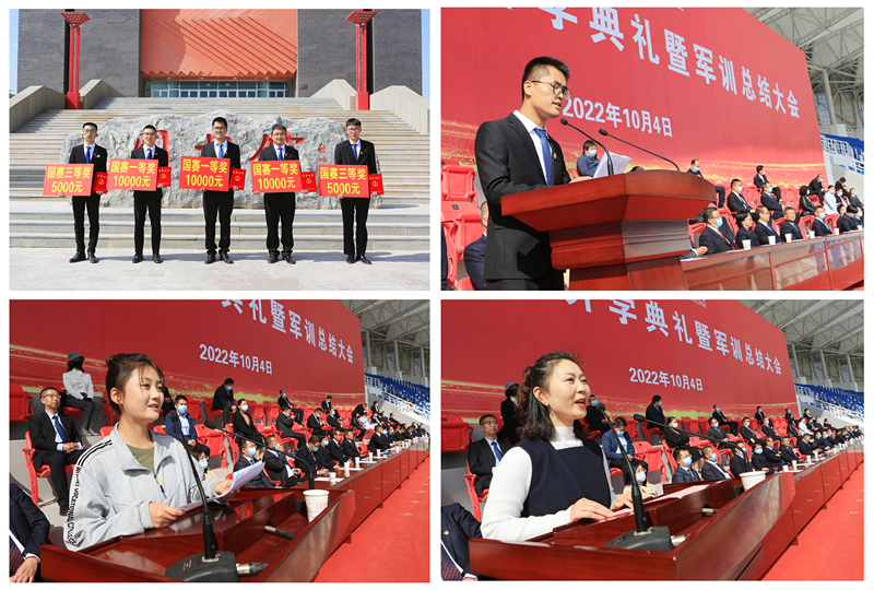 開學(xué)典禮前,舉行了新生軍訓(xùn)總結(jié)大會。各方陣隊列整齊劃一,步伐堅定有力,口號氣勢磅礴,歌聲嘹亮高亢,充分彰顯了廣大同學(xué)聽從命令、服從指揮、朝氣蓬勃、團(tuán)結(jié)向上的良好精神風(fēng)貌。學(xué)生工作處負(fù)責(zé)人宣讀了2022年軍訓(xùn)先進(jìn)集體和軍訓(xùn)標(biāo)兵名單,出席大會的領(lǐng)導(dǎo)為先進(jìn)集體、個人頒發(fā)了獎牌和榮譽(yù)證書。
