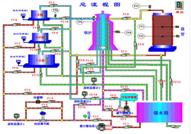 高級過程控制系統(tǒng)主要特點(diǎn)是被調(diào)參數(shù)囊括了流量、壓力、液位、溫度四大熱工參數(shù);執(zhí)行器中既有電動(dòng)調(diào)節(jié)閥儀表類執(zhí)行機(jī)構(gòu),又有變頻器等電力拖動(dòng)類執(zhí)行器。系統(tǒng)除了能改變調(diào)節(jié)器的設(shè)定值作階躍擾動(dòng)外,還可在對象中通過電磁閥和手操作閥制造各種擾動(dòng)。一個(gè)被調(diào)參數(shù)可用不同的動(dòng)力源、不同的執(zhí)行器和不同的工藝線路下可演變成多種調(diào)節(jié)回路,以利于討論、比較各種調(diào)節(jié)方案的優(yōu)劣,從而進(jìn)行多變量控制系統(tǒng)及特定的高級過程控制系統(tǒng)實(shí)驗(yàn)。