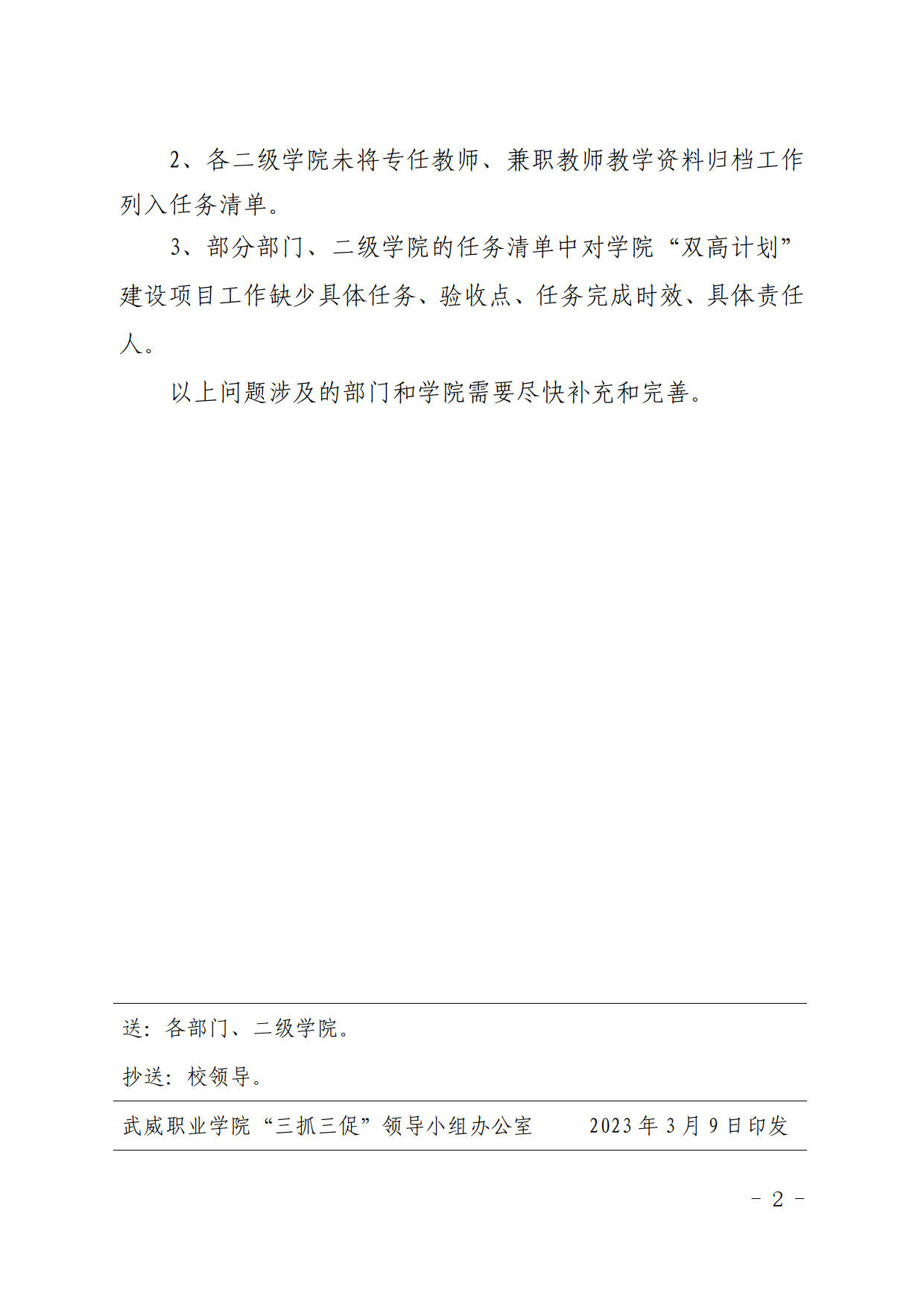 武威職業(yè)學(xué)院“三抓三促”行動督查通報(一)