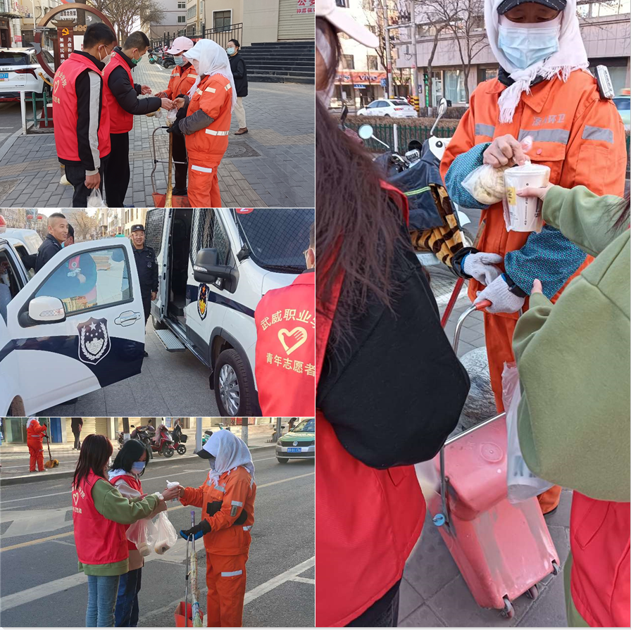 第一組志愿者為分布在文化廣場周邊工作崗位上的民警和環(huán)衛(wèi)工人送去一份份免費愛心早餐,誠摯感謝他們起早貪黑不辭辛苦為城市做出的貢獻(xiàn)。