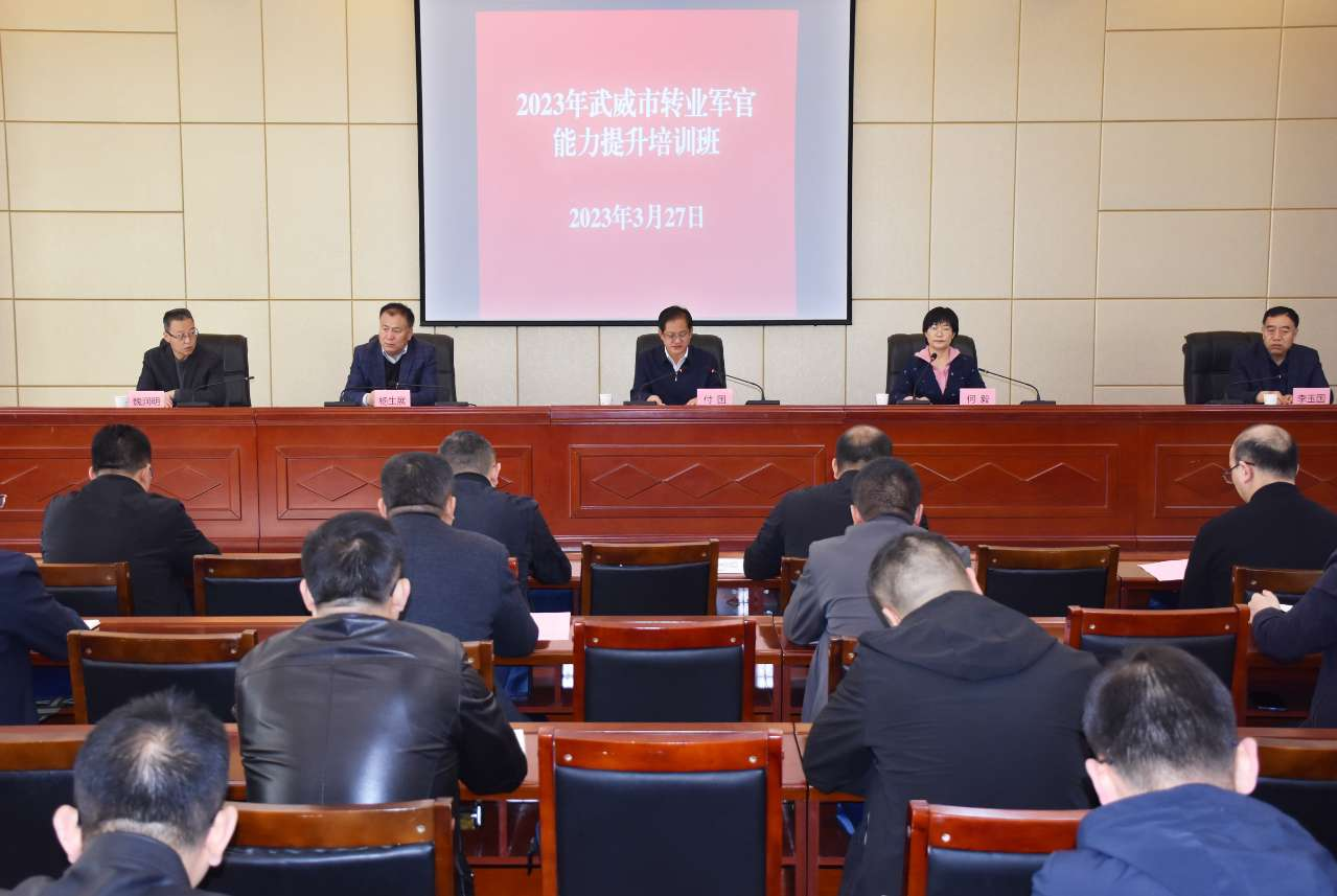 2023年3月27日,由武威市退役軍人事務局主辦、武威職業(yè)學院承辦的2023年武威市轉業(yè)軍官能力提升培訓在武威職業(yè)學院行樹樓北側報告廳舉行開班儀式。這次培訓是深入貫徹落實黨的二十大精神和習近平總書記關于退役軍人工作的重要論述和指示批示精神,全面貫徹新發(fā)展理念,以深入開展“三抓三促”行動為契機,以提高轉業(yè)軍官適應能力、履職能力和綜合素質為重點,促進轉業(yè)軍官真正以過硬本領、優(yōu)良作風、扎實成效服務武威經濟社會高質量發(fā)展的重要舉措。
