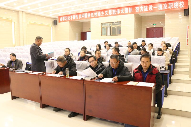 大會(huì)在莊嚴(yán)的國歌聲中拉開序幕,黨委書記、院長趙明作了《聚焦國家職業(yè)教育改革方案,全力以赴推動(dòng)學(xué)院高質(zhì)量發(fā)展》的年度工作報(bào)告,全面客觀、實(shí)事求是地回顧了2019年工作,分析了存在的困難和問題,安排了2020年主要工作,思路清晰,措施有力,催人奮進(jìn)。他指出,要始終堅(jiān)持以習(xí)近平新時(shí)代中國特色社會(huì)主義思想為指導(dǎo),貫徹落實(shí)黨的十九大和十九屆二中、三中、四中全會(huì)精神和習(xí)近平總書記視察甘肅重要講話和指示精神,堅(jiān)持黨的教育方針,堅(jiān)持立德樹人,牢固樹立“四個(gè)意識(shí)”,堅(jiān)定“四個(gè)自信”,堅(jiān)決做到“兩個(gè)維護(hù)”,以教學(xué)診斷與改進(jìn)工作為抓手,加快智能校園建設(shè),不斷深化產(chǎn)教融合、校企合作,提升辦學(xué)效益、水平和治理能力、治理體系建設(shè),統(tǒng)籌謀劃“十四五”發(fā)展規(guī)劃,不斷開創(chuàng)改革發(fā)展新局面。