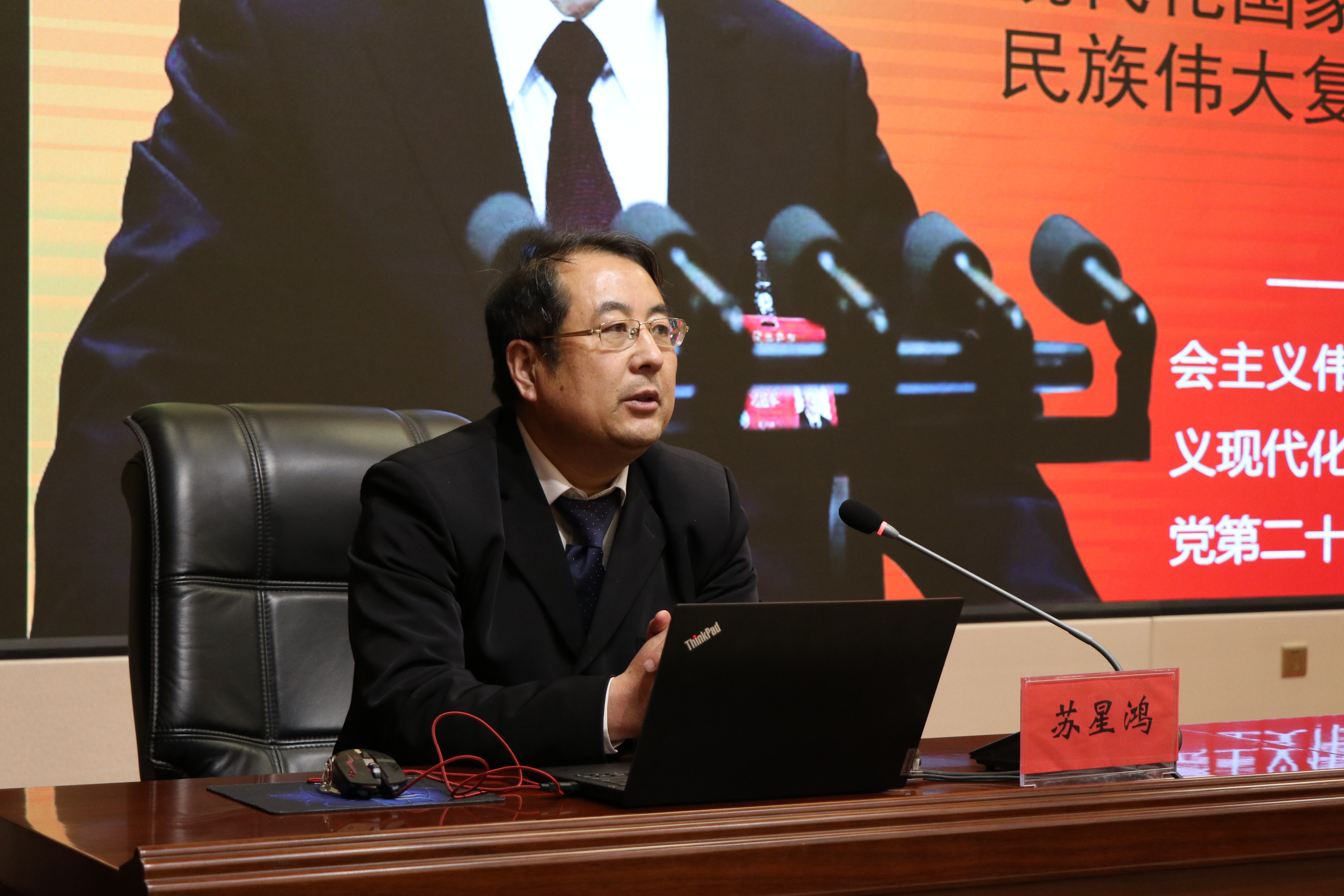 蘇星鴻教授以《深刻把握黨的二十大精神的核心要義》為題,從黨的二十大召開的歷史背景和重大意義、過去五年的工作和新時(shí)代十年的偉大變革、開辟馬克思主義中國化時(shí)代化新境界的科學(xué)內(nèi)涵、新時(shí)代新征程中國共產(chǎn)黨使命任務(wù)的豐富內(nèi)涵、以黨的自我革命推進(jìn)偉大的社會(huì)革命的實(shí)踐意義和“五個(gè)必由之路”的戰(zhàn)略意義六個(gè)方面進(jìn)行了深入淺出的闡述,對師生深刻理解黨的二十大精神具有很強(qiáng)的啟發(fā)意義。