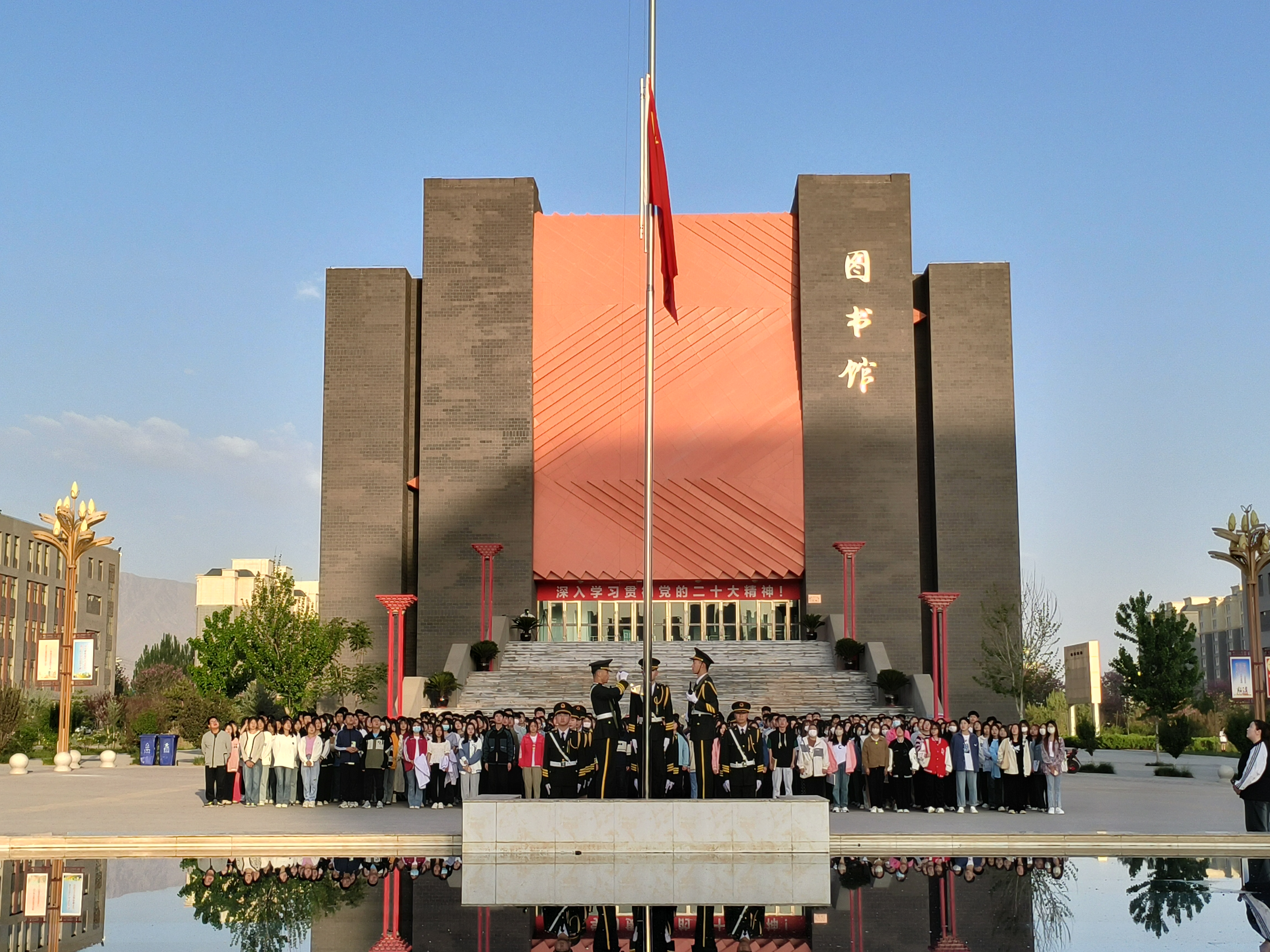 ? ? ? ?五月如歌,萬物齊詠,沐浴著夏日清晨的暖陽,2023年5月15日,藥學院舉行第十二周的升旗儀式。本次升旗儀式在圖書館前國旗下進行,由學生會主席尚寶萍同學主持。
