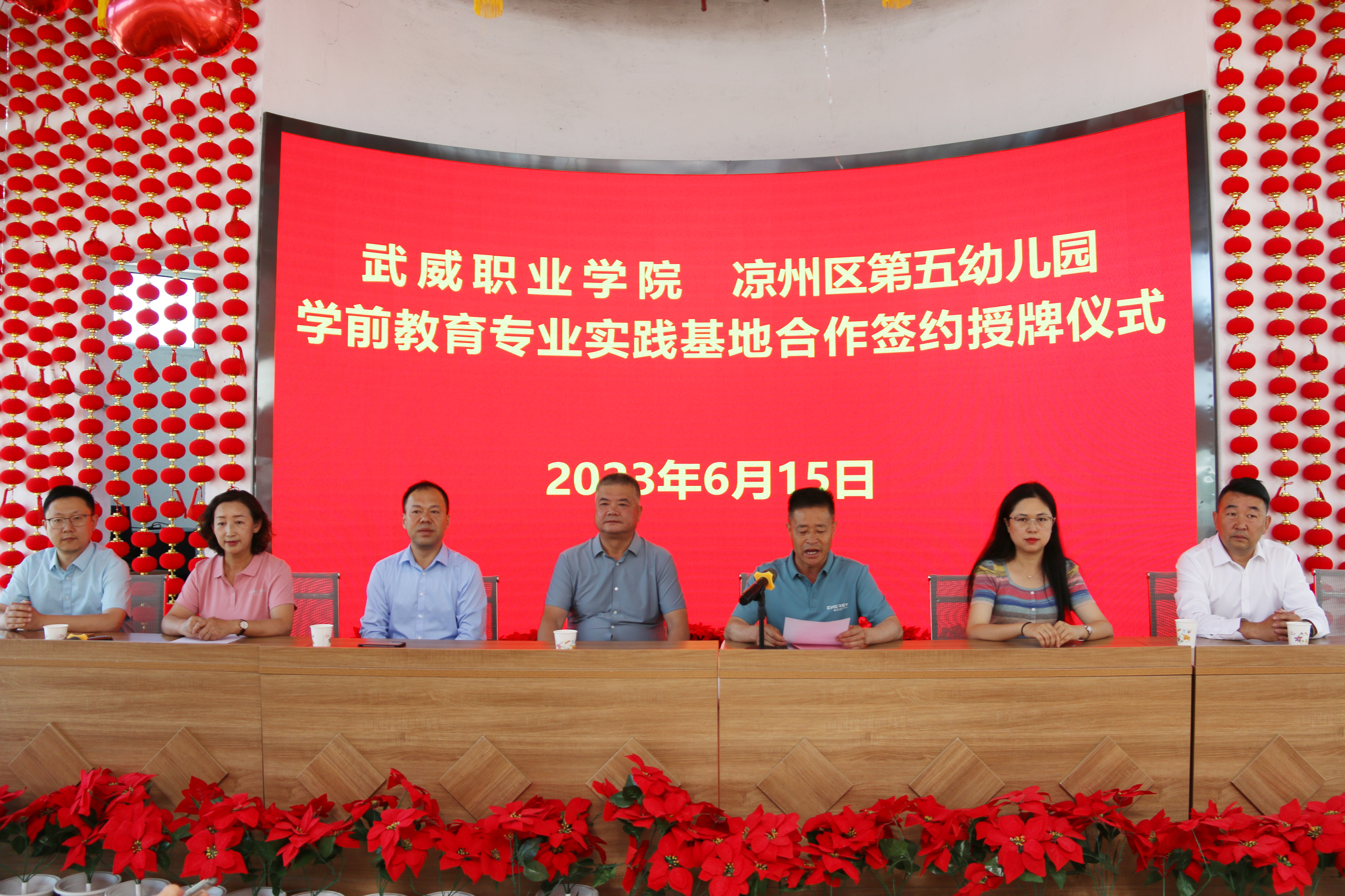 6月15日,武威職業(yè)學(xué)院學(xué)前教育專業(yè)實踐基地授牌儀式分別在武威市第二實驗幼兒園、涼州區(qū)第五幼兒園舉行。學(xué)校黨委委員、副校長王守云,武威市第二實驗幼兒園園長羅亞莉,涼州區(qū)第五幼兒園園長張俊山出席授牌儀式。藝術(shù)與教育學(xué)院教師代表,市區(qū)幼兒園領(lǐng)導(dǎo)班子成員及部分教師參加授牌儀式。