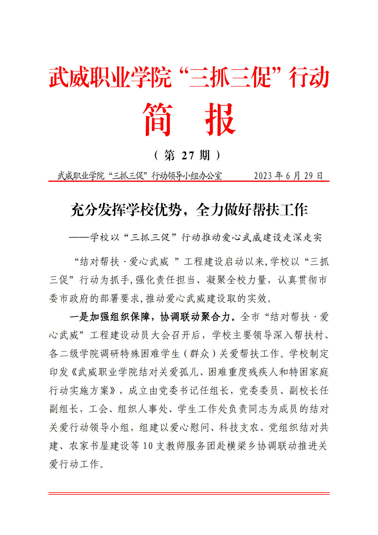 簡報第27期:充分發(fā)揮學校優(yōu)勢,全力做好幫扶工作——學校以“三抓三促”行動推動愛心武威建設(shè)走深走實