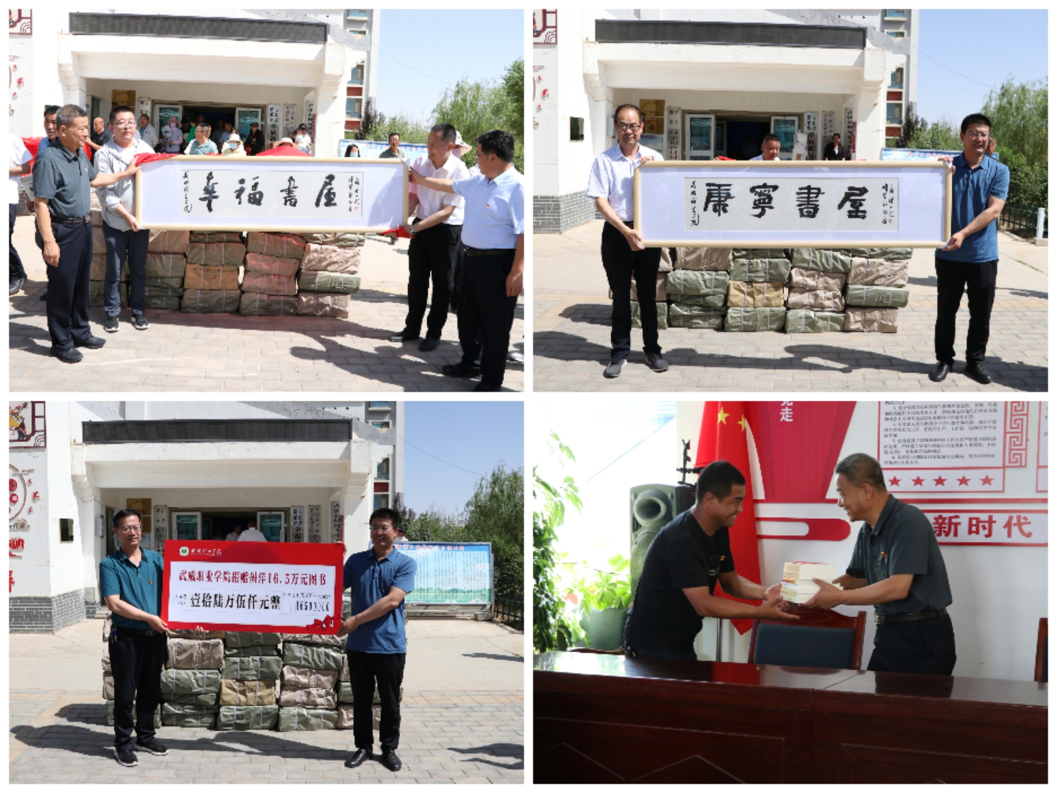 趙明、何文國就文化振興項目進(jìn)行了深入交流,簽訂了《定向幫扶捐贈協(xié)議》《武威職業(yè)學(xué)院在橫梁鄉(xiāng)幸福新村、康寧新村捐建開放式農(nóng)家書屋的協(xié)議書》,雙方代表為幸福書屋、康寧書屋揭牌,學(xué)校為橫梁鄉(xiāng)捐贈文化振興專項資金13萬元和碼洋16.5萬元的圖書。