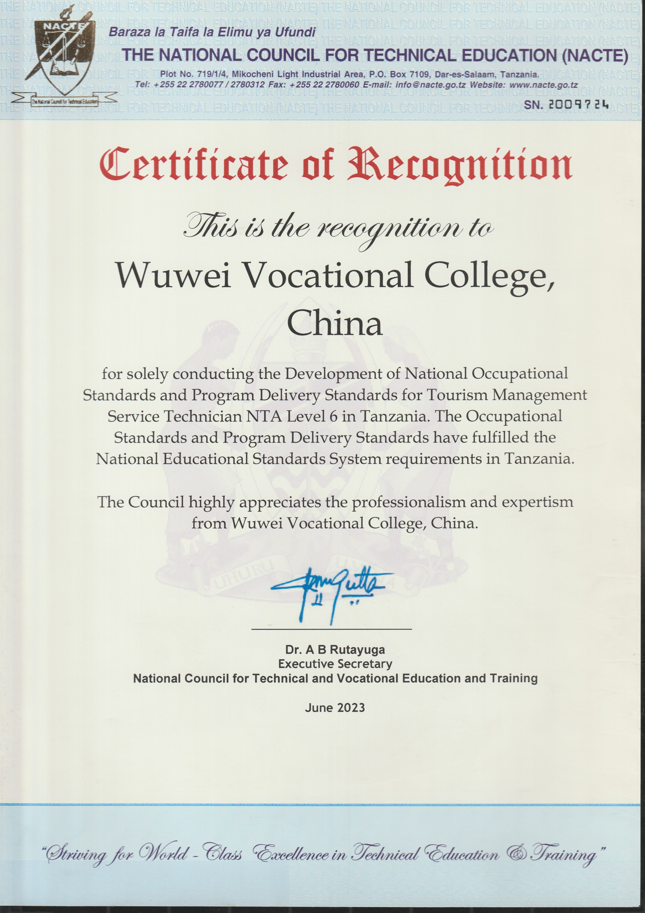 學(xué)校獨(dú)立開發(fā)制定的職業(yè)標(biāo)準(zhǔn)和配套專業(yè)教學(xué)標(biāo)準(zhǔn)正式納入坦桑尼亞國家職業(yè)教育體系