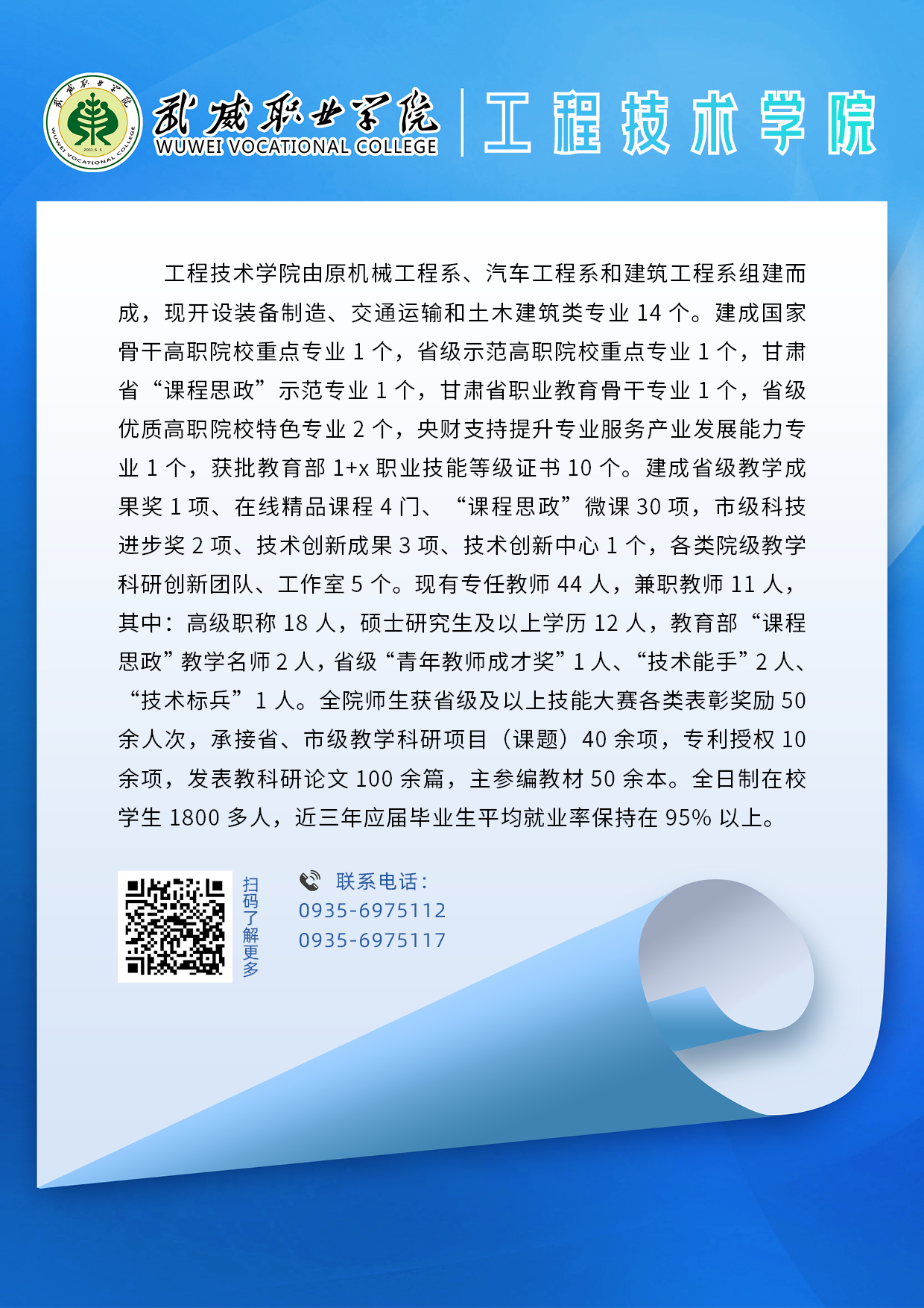 武威職業(yè)學(xué)院二級(jí)學(xué)院專業(yè)簡介丨工程技術(shù)學(xué)院