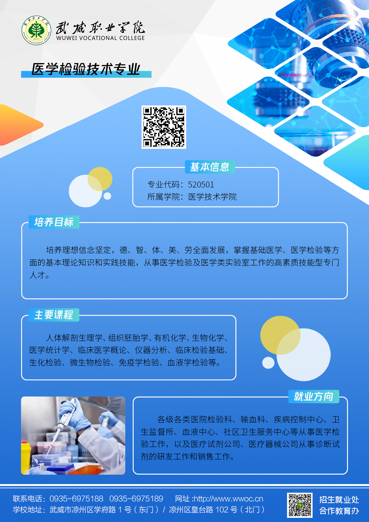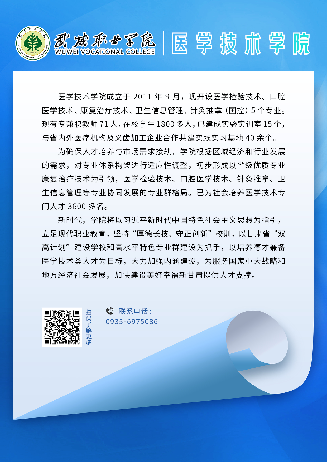 武威職業(yè)學院二級學院專業(yè)簡介丨醫(yī)學技術(shù)學院