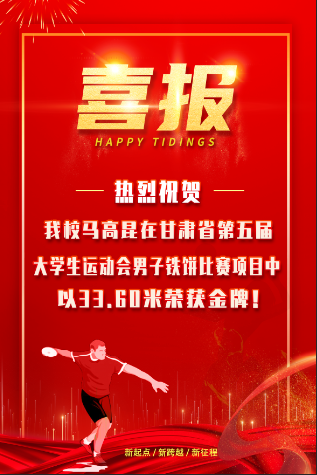 熱烈祝賀我校馬高昆在第五屆全省大學(xué)生運動會中獲得鐵餅金牌