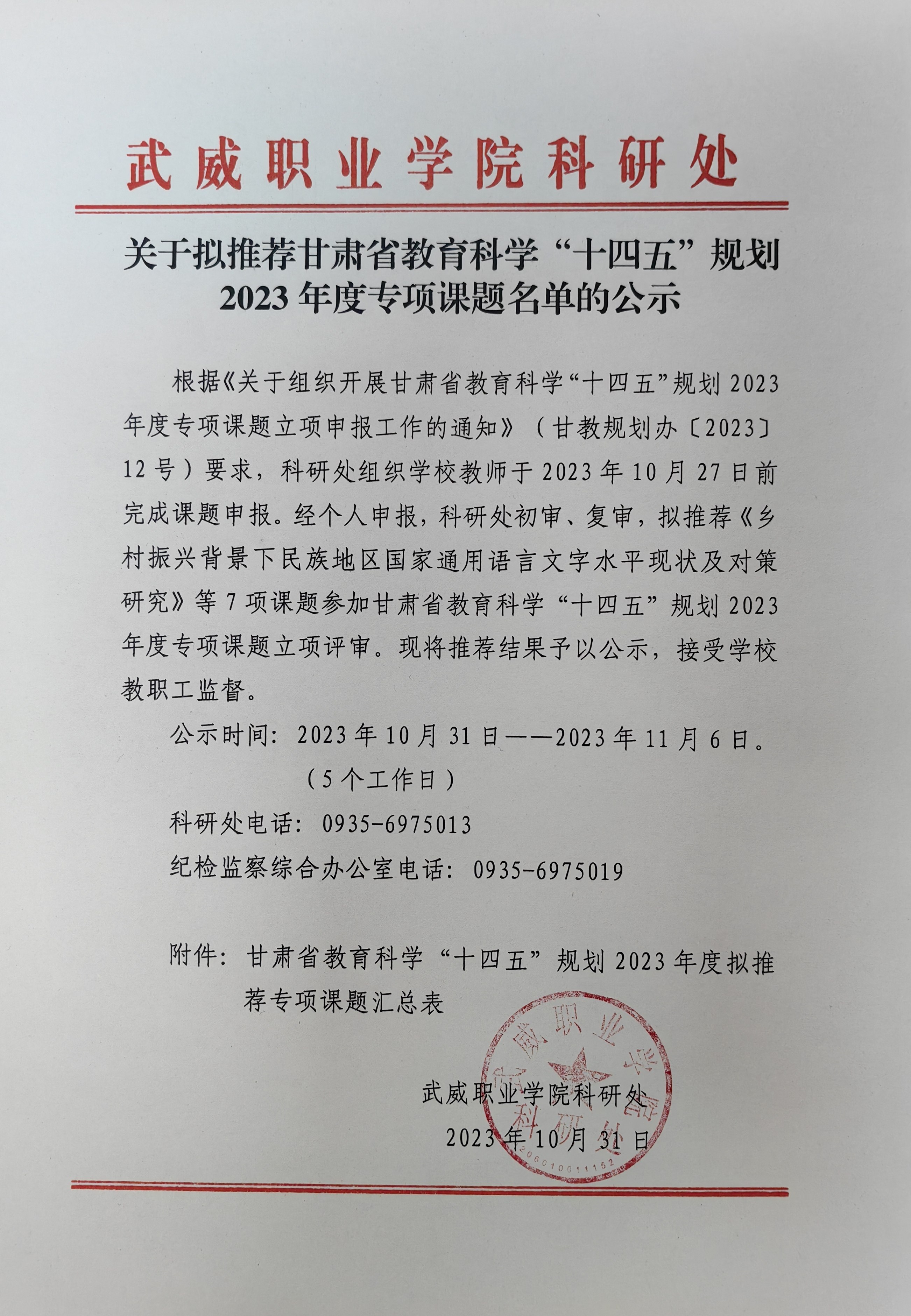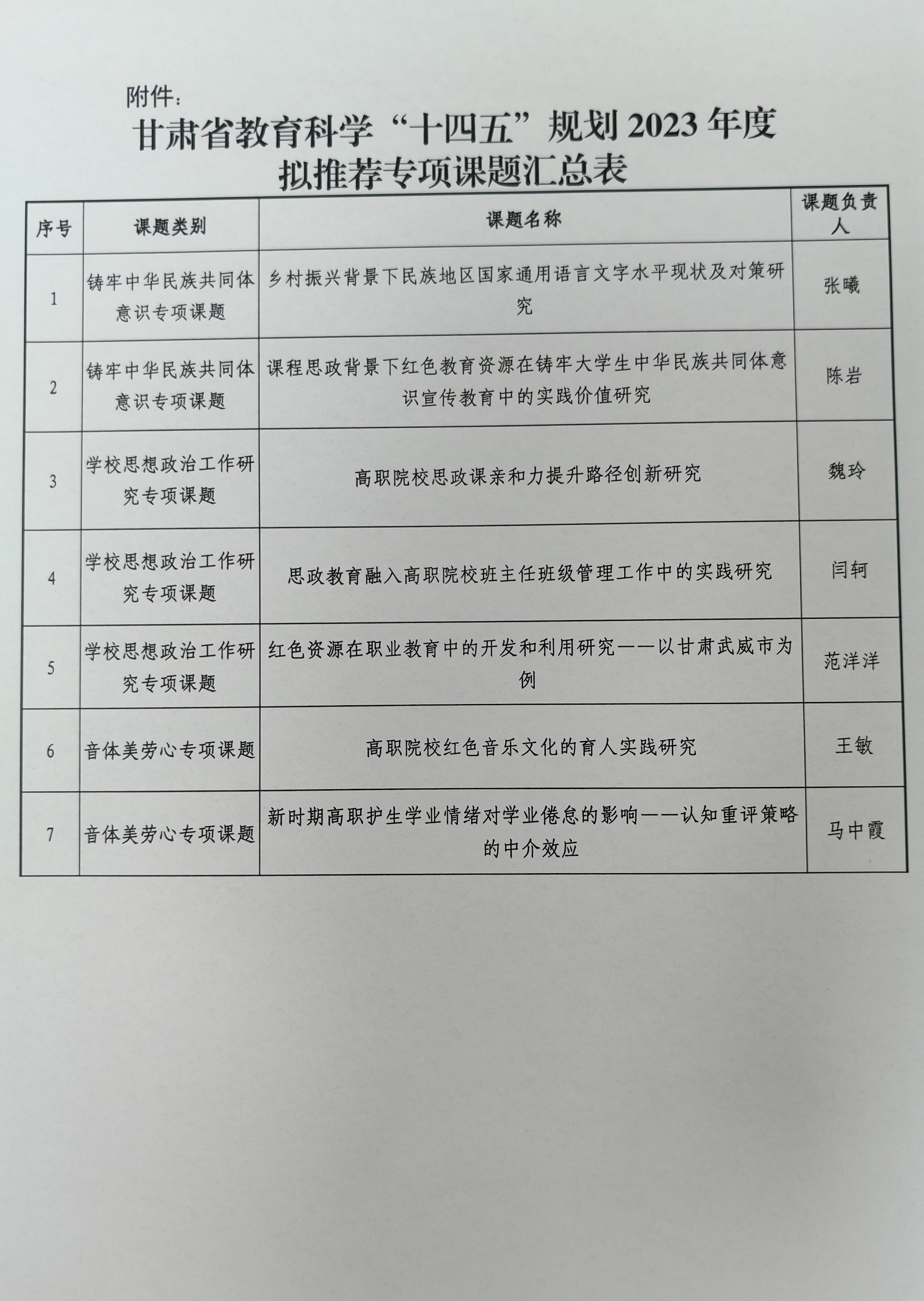 關(guān)于擬推薦甘肅省教育科學(xué)“十四五”規(guī)劃2023年度專(zhuān)項(xiàng)課題名單的公示