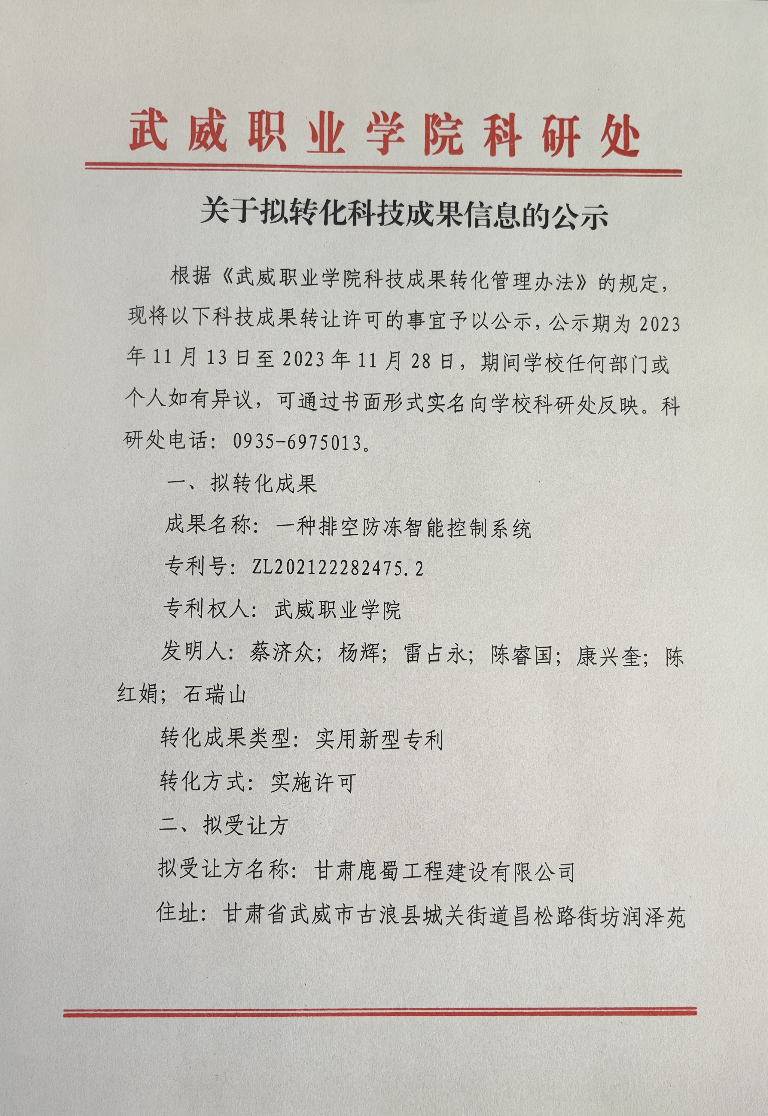 關(guān)于擬轉(zhuǎn)化科技成果信息的公示