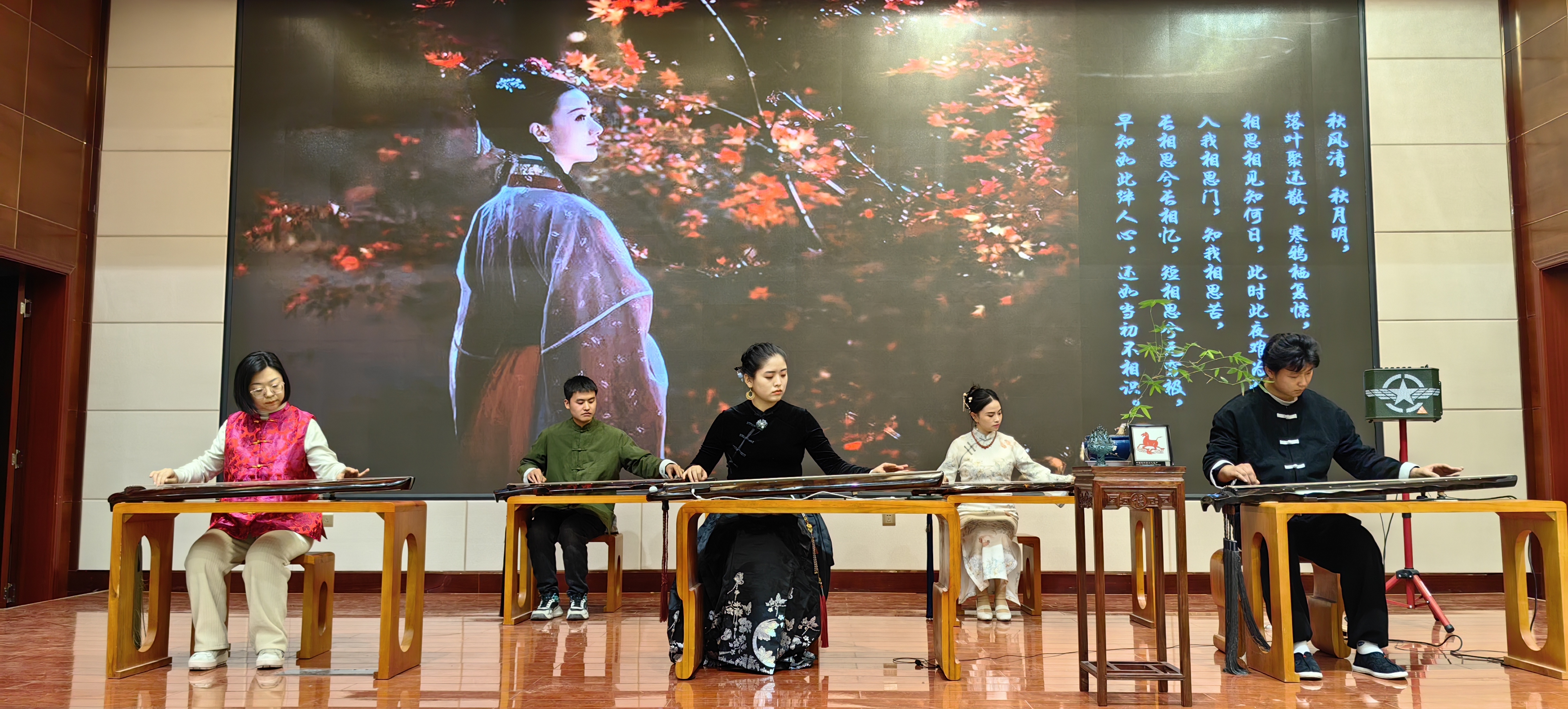 霍宏昌為我校提供的古琴公益課自今年5月開班以來,吸引眾多師生學(xué)習(xí)和關(guān)注。當(dāng)晚,師生們演奏了近期的學(xué)習(xí)成果,隨著《醉漁唱晚》《酒狂》《鳳求凰》《秋風(fēng)詞》《仙翁操》等傳統(tǒng)琴曲的裊裊琴音翩躚入耳,古琴藝術(shù)之美令現(xiàn)場(chǎng)觀眾沉醉,感悟到了人在畫中游、畫在樂中觀的意境和文化內(nèi)涵。