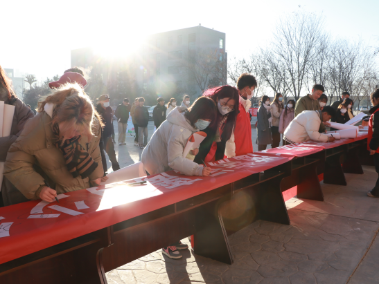 防艾知識宣傳志愿隊伍在大學生活動中心廣場發(fā)放宣傳手冊,制作并贈送紅絲帶標志400余個,活動中對300余名學生進行了免費艾滋病檢測。同學們一同在宣傳條幅上簽名,祝福語書滿了紅絲帶,一撇一捺、一筆一劃,都是無數(shù)的信念與期望的匯聚,是大家用無聲的行動承諾自己防艾的決心。