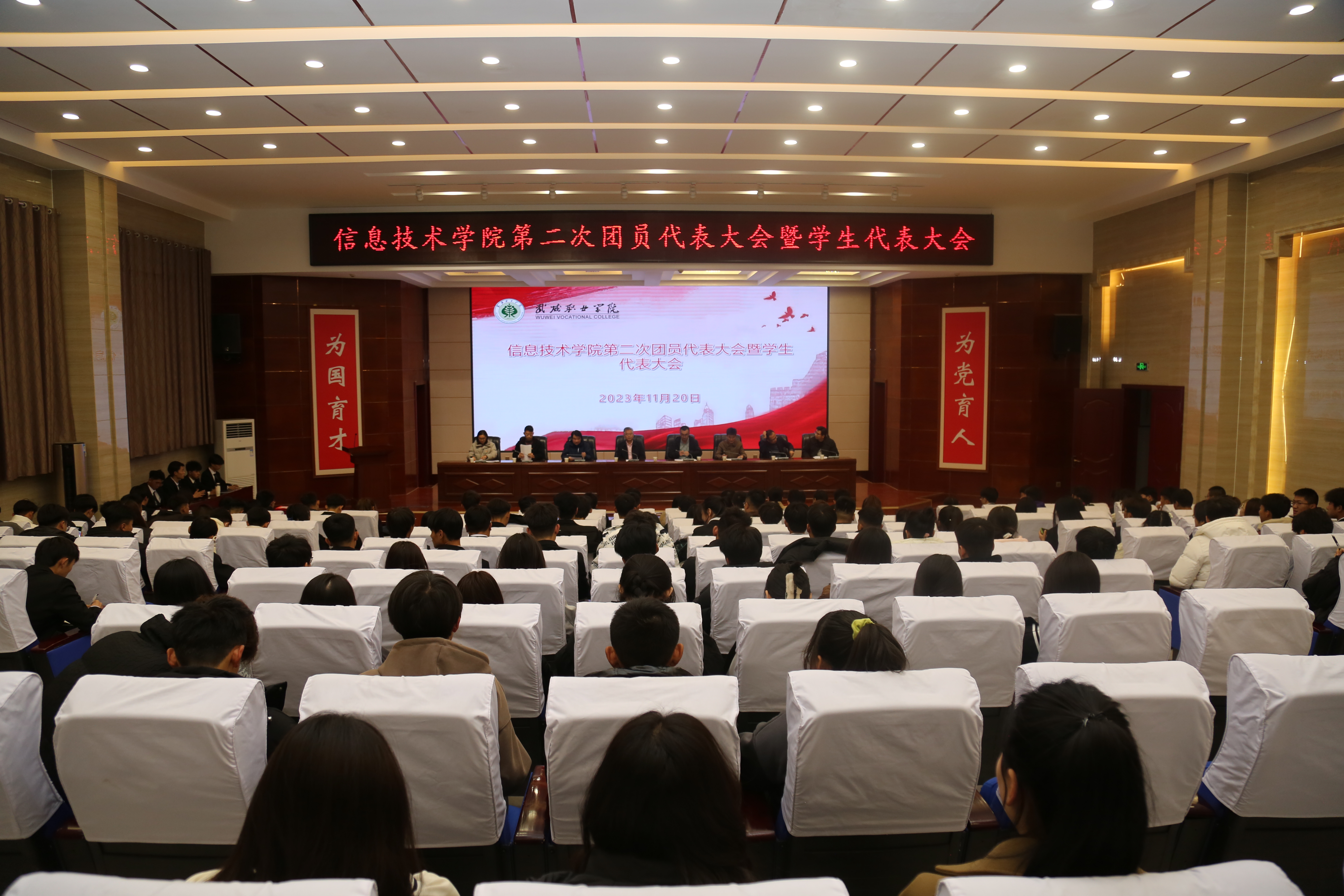 2023年11月20日,信息技術(shù)學(xué)院第二次團員代表大會暨學(xué)生代表大會在菁英廳隆重召開。信息技術(shù)學(xué)院黨總支書記潘從明、校團委張登海及師生代表共200余人參加會議。