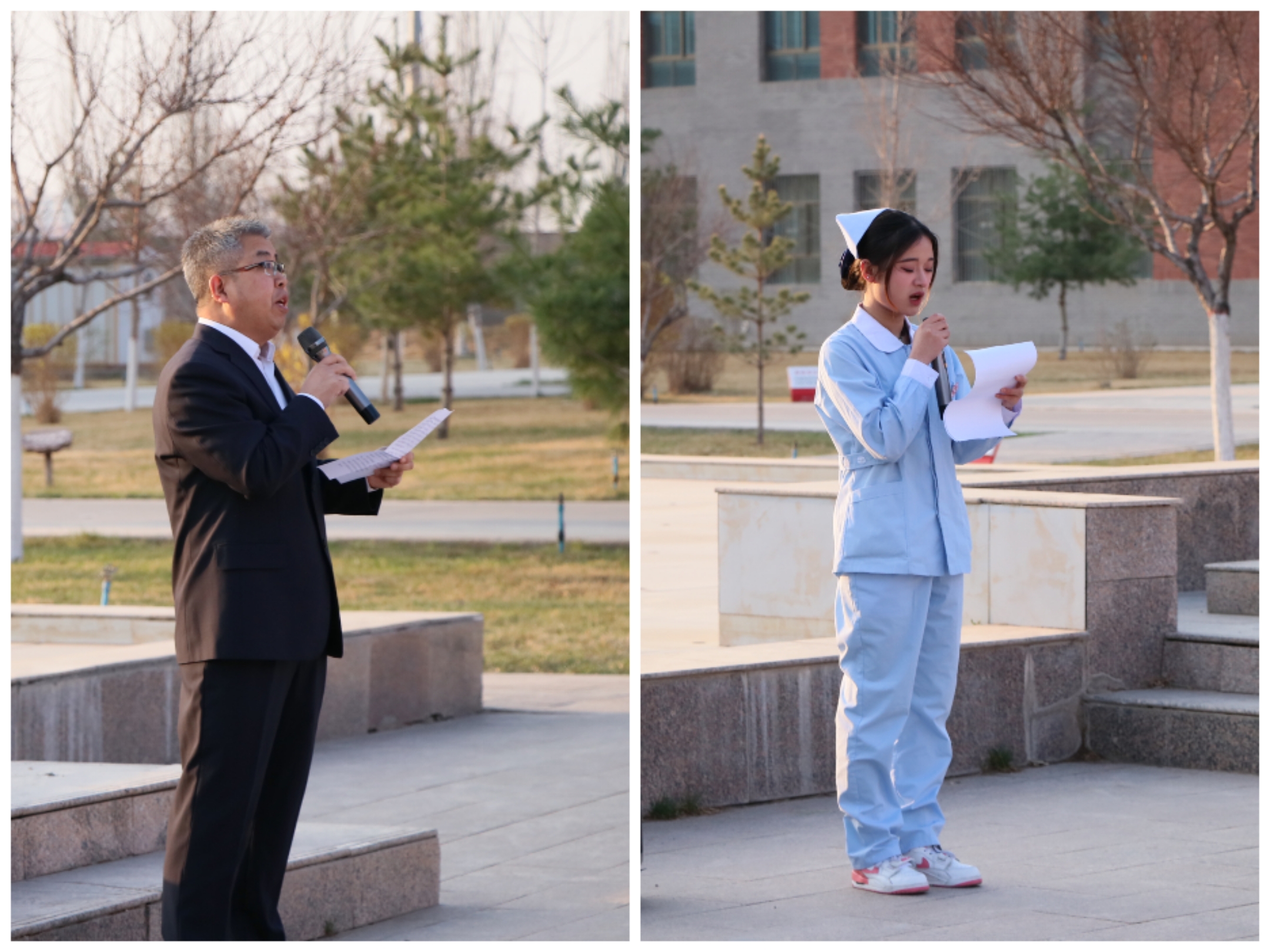 張建輝在講話中表示,清明節(jié)是我國傳統(tǒng)的祭祖節(jié)日,也是緬懷先烈、感恩先人的重要日子,全體師生要銘記先烈們的英勇事跡,傳承他們大無畏精神,感恩他們的無私付出。張建輝強(qiáng)調(diào),作為護(hù)理專業(yè)的學(xué)生,同學(xué)們更應(yīng)當(dāng)懂得感恩,感恩父母的養(yǎng)育之恩,老師的教誨之恩,感恩學(xué)校的培養(yǎng)之恩,感恩國家的大愛之恩,并且將感恩內(nèi)化于心,外化于行、知行合一,用自己的實(shí)際行動為他人和社會創(chuàng)造價(jià)值。