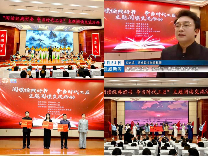 4月23日,由省總工會(huì)主辦、市總工會(huì)承辦,武威職業(yè)學(xué)院協(xié)辦的“閱讀經(jīng)典好書(shū)爭(zhēng)當(dāng)時(shí)代工匠”主題讀書(shū)交流活動(dòng)在菁英廳隆重舉行。省總工會(huì)三級(jí)調(diào)研員馬艷,市總工會(huì)黨組書(shū)記、常務(wù)副主席康金蓮,學(xué)校黨委副書(shū)記翟存祥出席活動(dòng)。全市職工書(shū)屋、便利型職工閱讀站點(diǎn)、勞模書(shū)架建設(shè)單位工會(huì)負(fù)責(zé)人,市、縣區(qū)總工會(huì)干部職工230多人參加活動(dòng)。