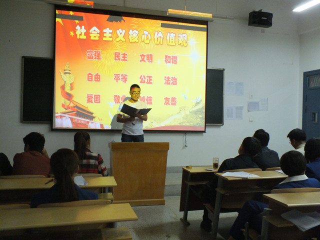 為深入學習貫徹黨的十八大精神和習近平總書記系列講話中關于大力推進社會主義核心價值體系建設的要求,積極響應院團委的號召,我系于4月14日組織師生在4號教學樓313教室開展了“社會主義核心價值觀引領我成長”主題演講比賽。