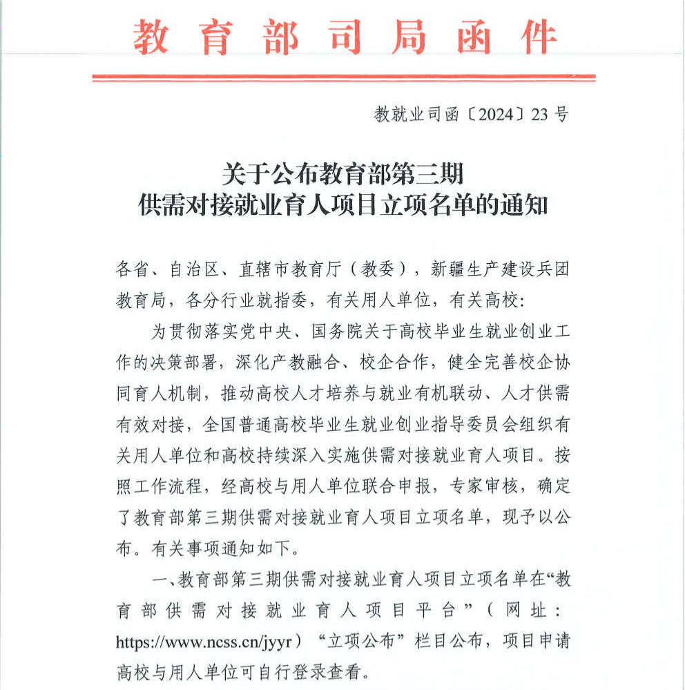 喜訊!學(xué)校獲批教育部第三期供需對接就業(yè)育人項(xiàng)目6項(xiàng)