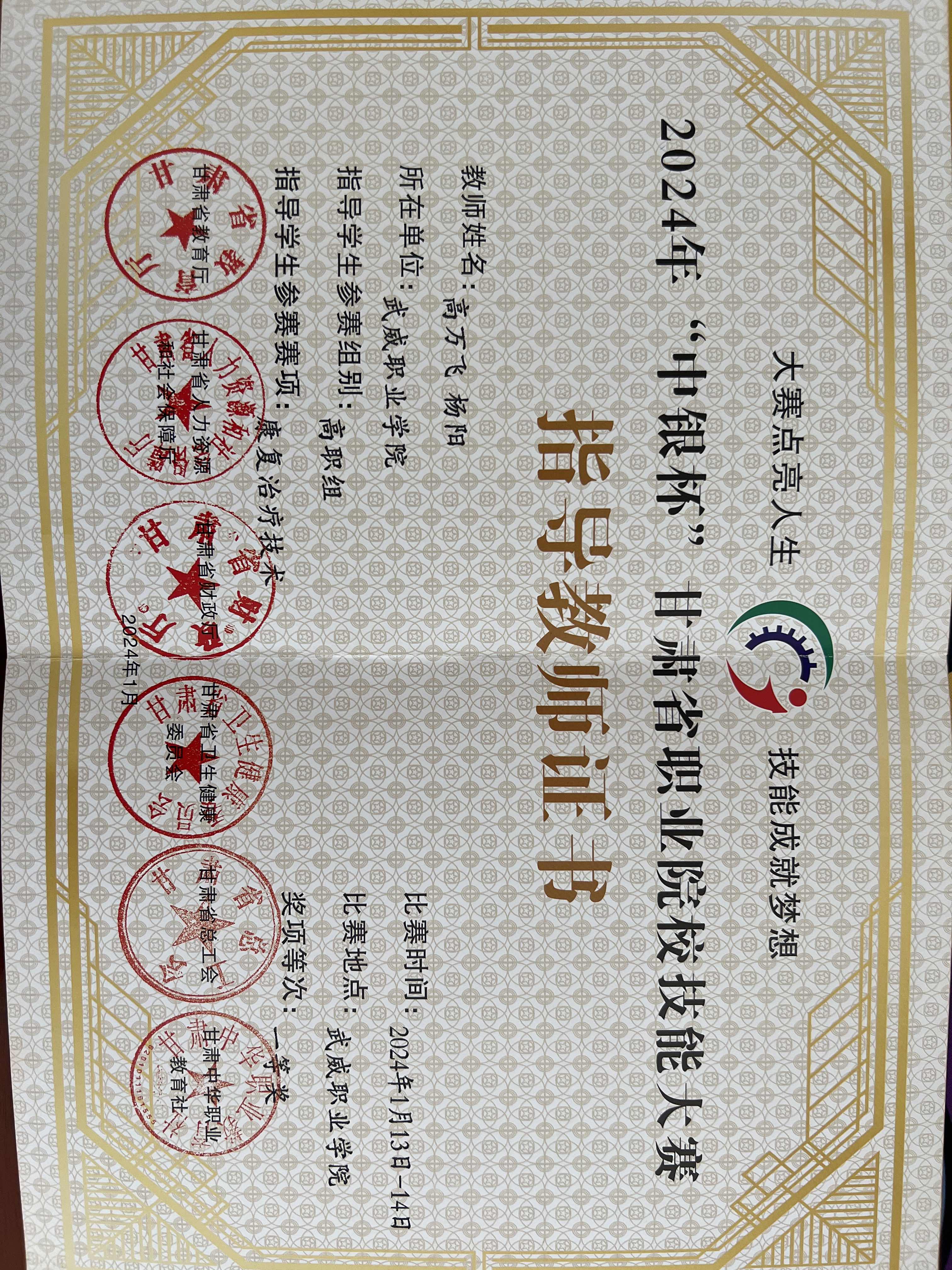 在2024年“中銀杯”甘肅省職業(yè)院校技能大賽中我院多組學(xué)生、指導(dǎo)教師獲得高職組團體一等獎等多項獎項。